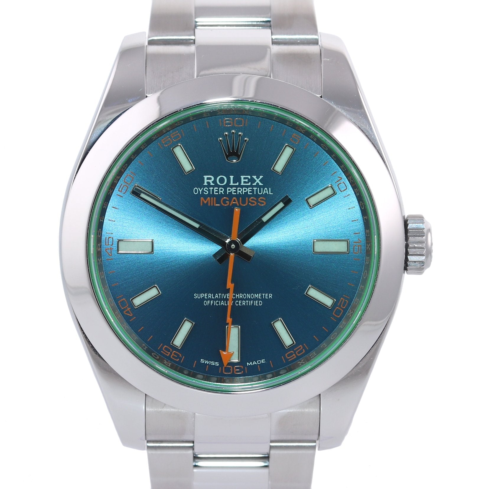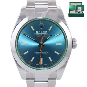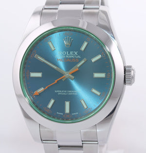 2019 PAPERS Rolex Milgauss Blue Dial Anniversary Green Crystal 116400GV Steel Watch