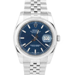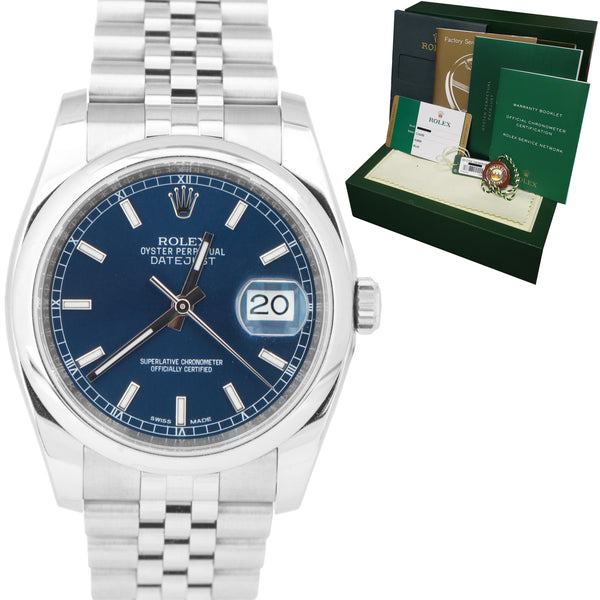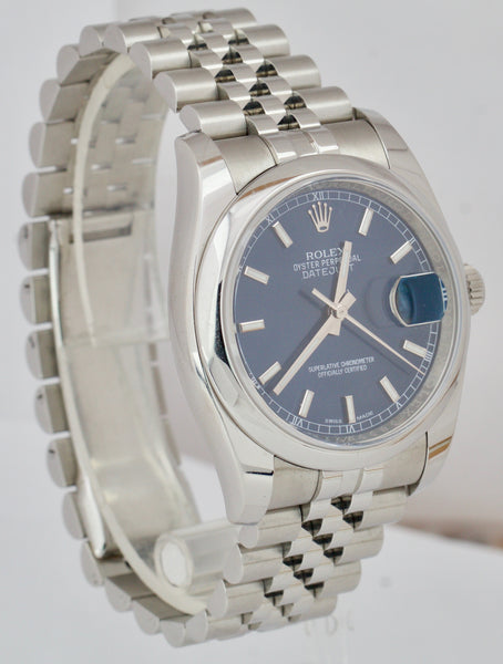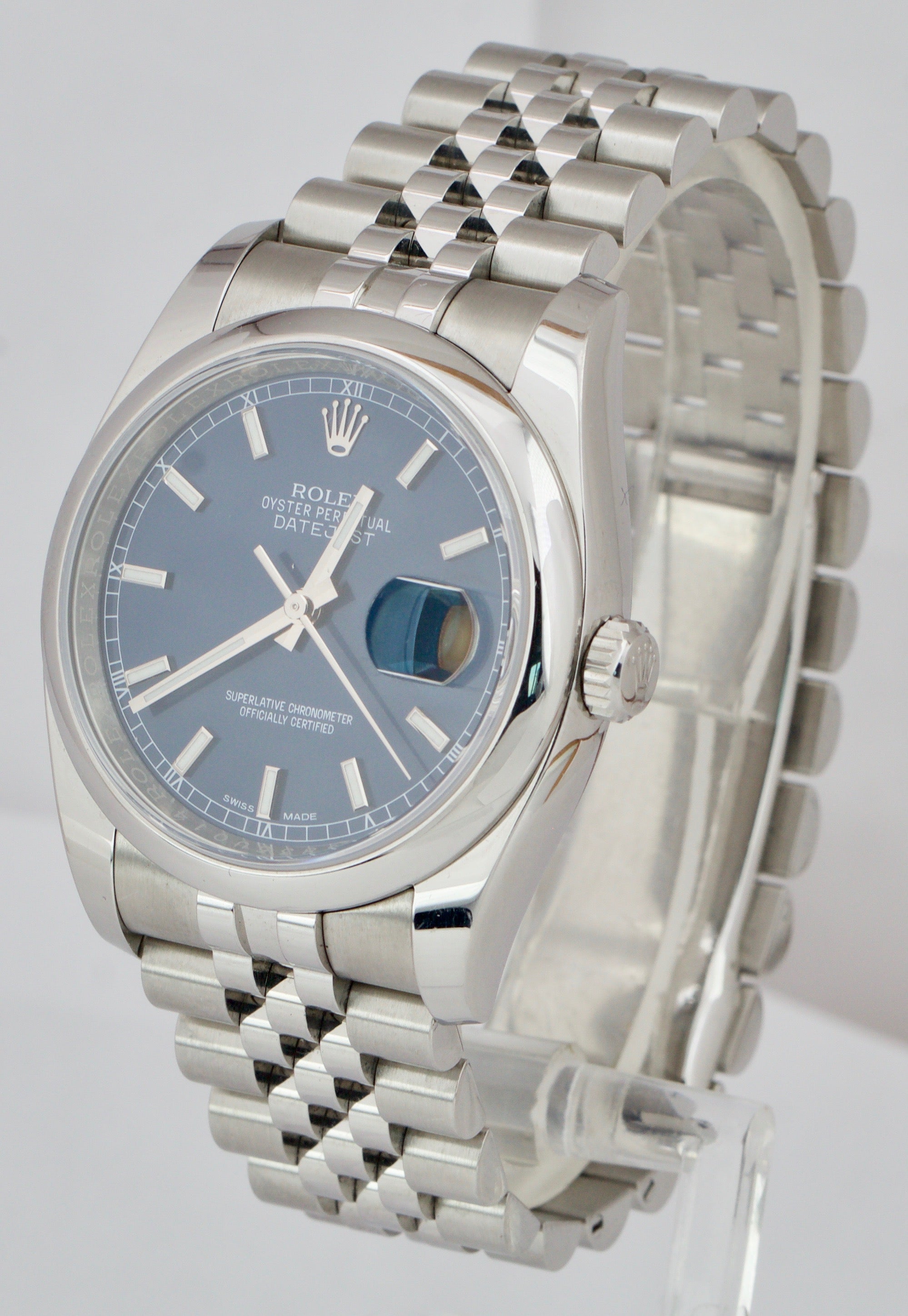 2015 Rolex DateJust 36mm Blue Stick Stainless Steel Smooth Jubilee Watch 116200