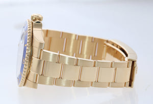 | Bezel | Original Rolex Unidirectional Rotatable 60-Minute Graduated Blue Ceramic 18K Yellow Gold Bezel |