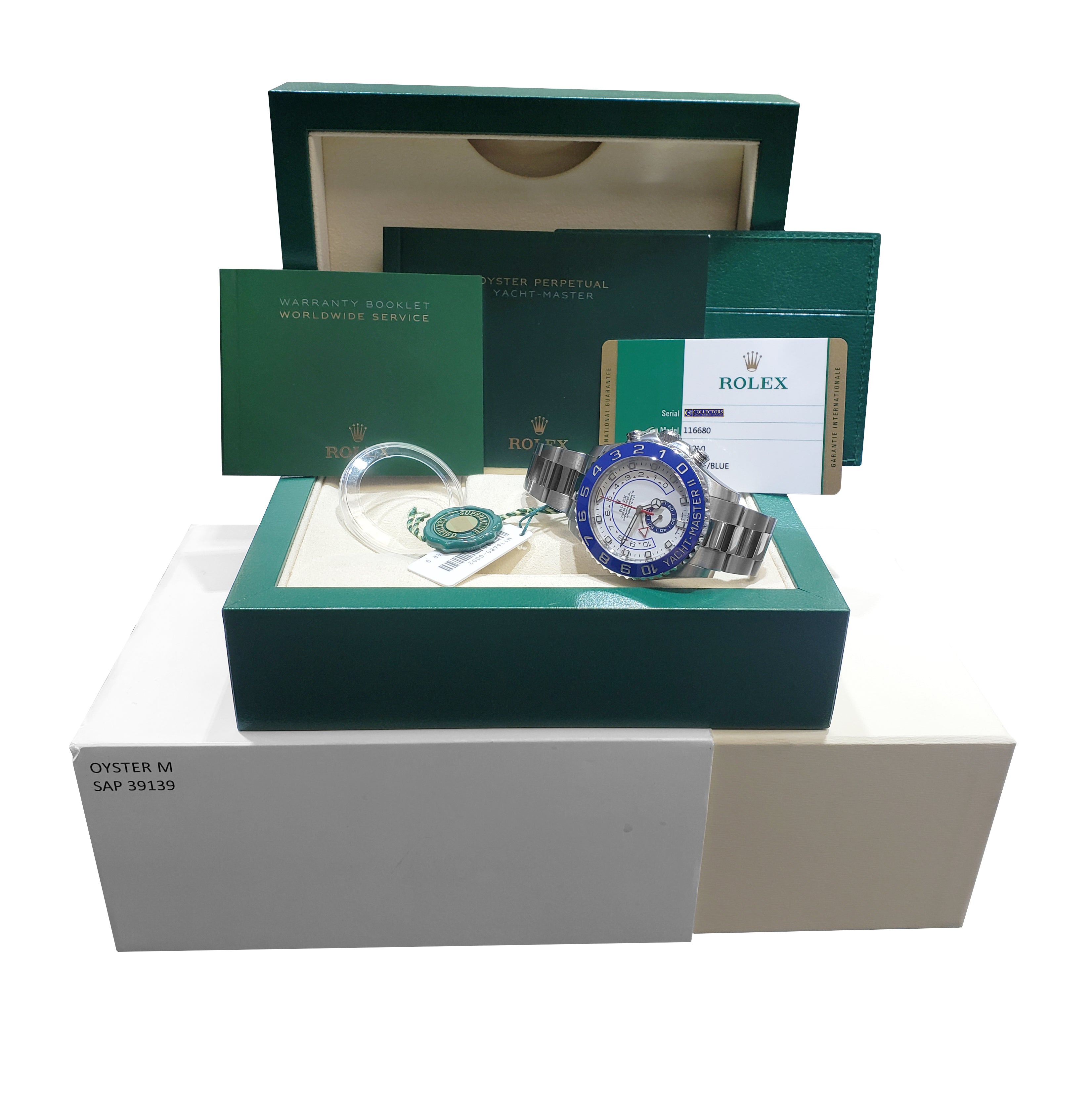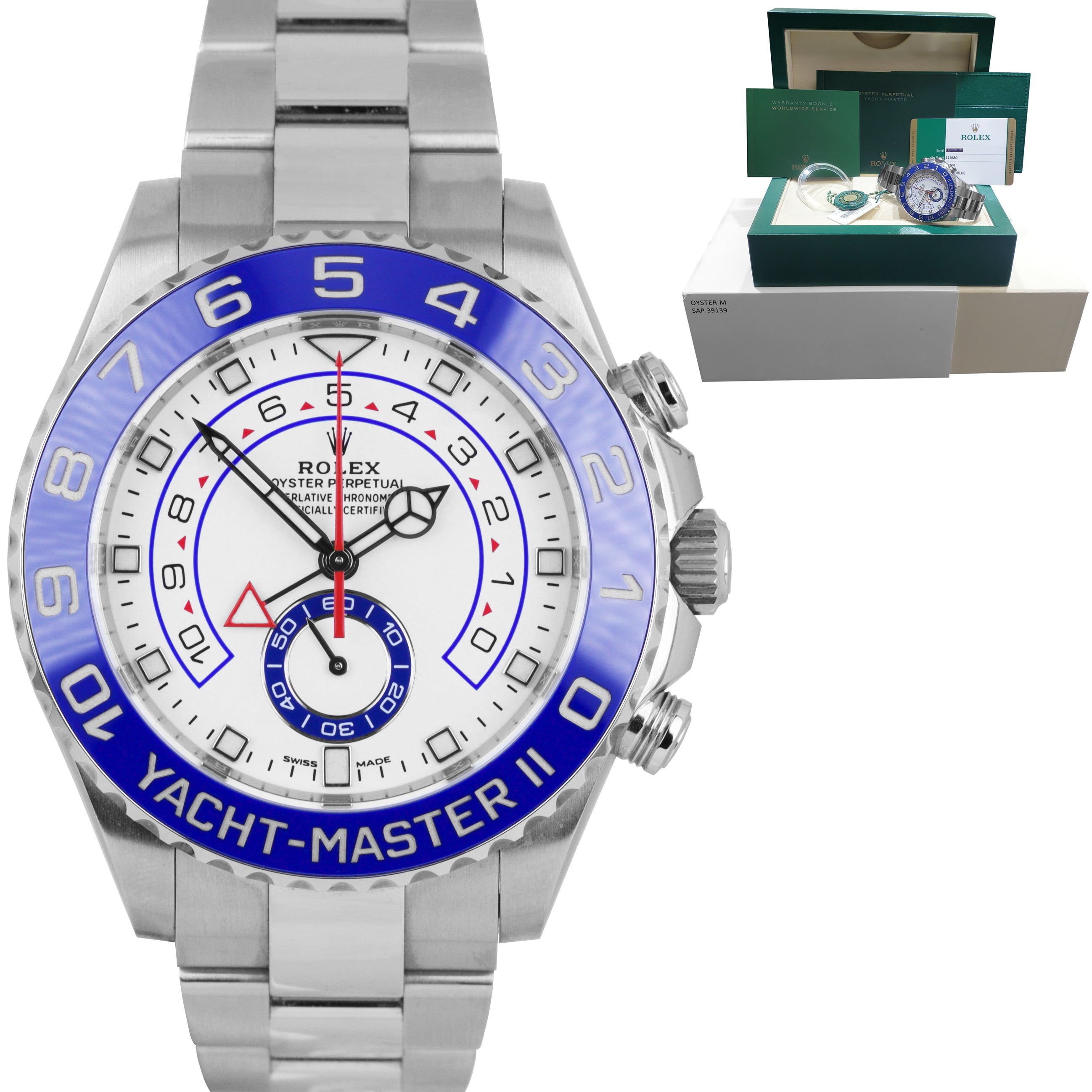 2019 Rolex Yacht-Master II 44mm MERCEDES HANDS White Blue Ceramic 116680 Watch