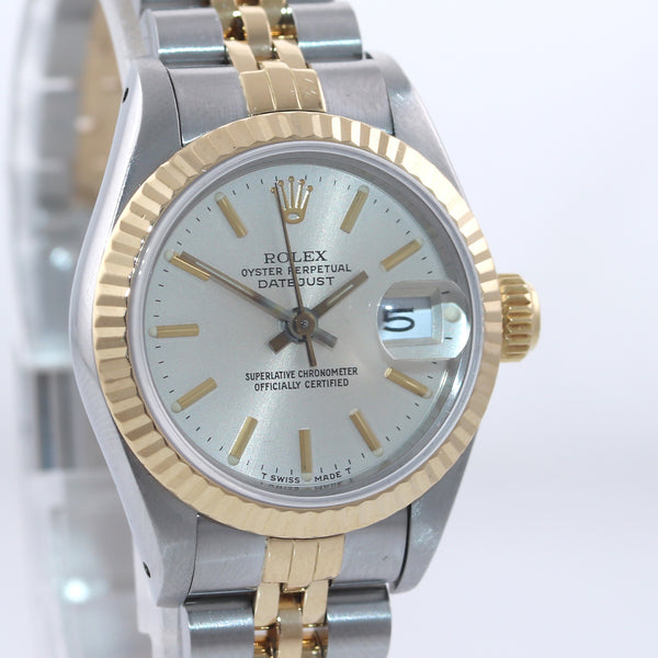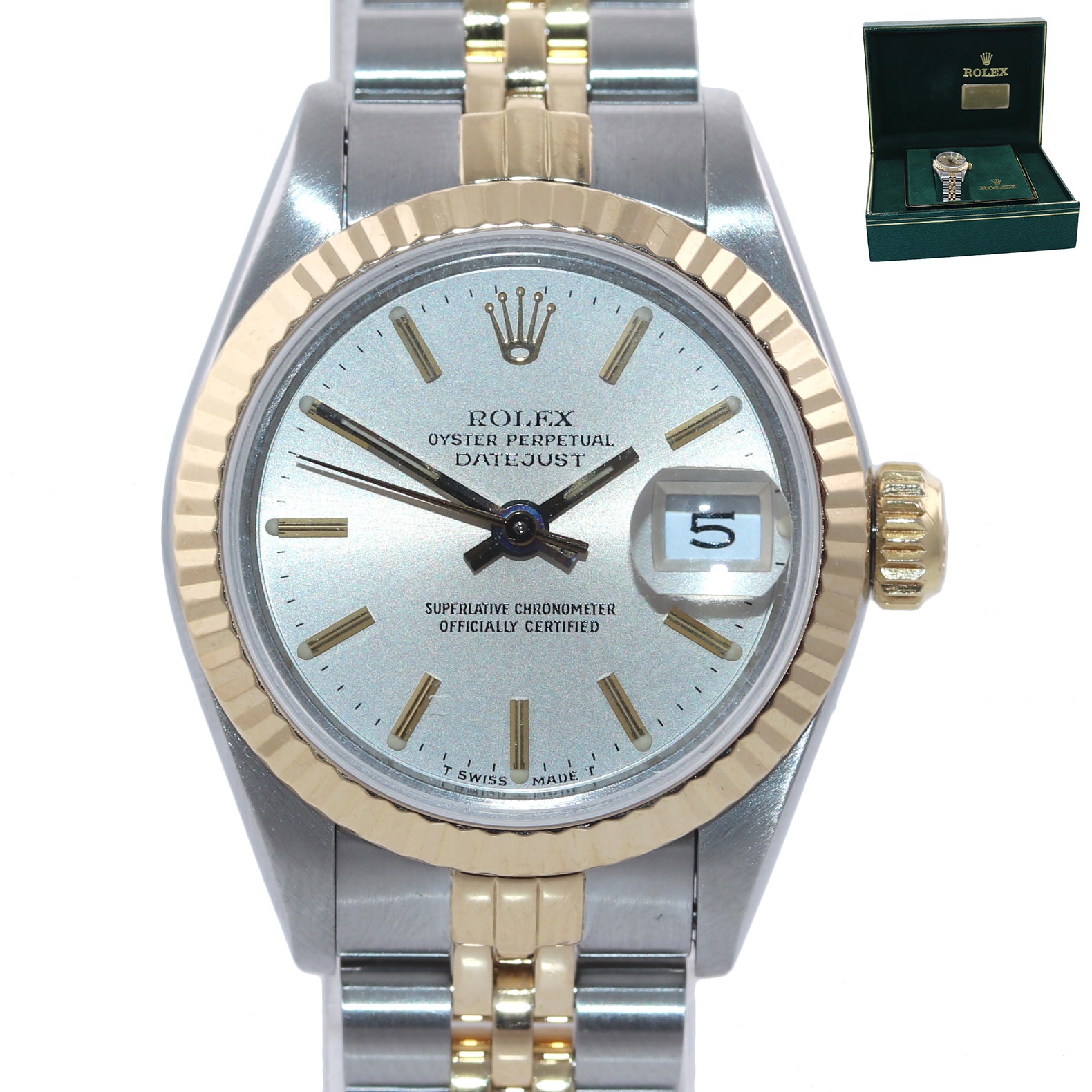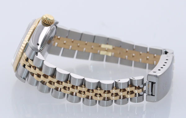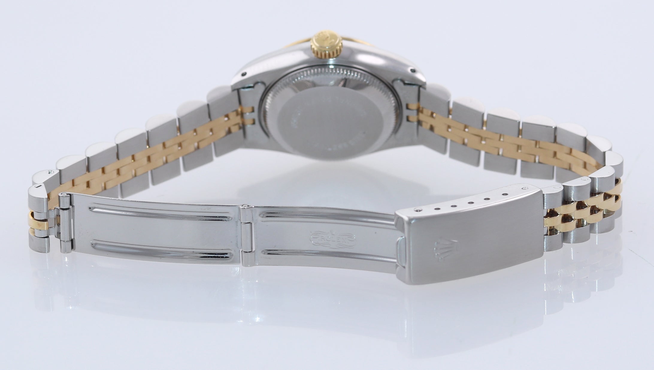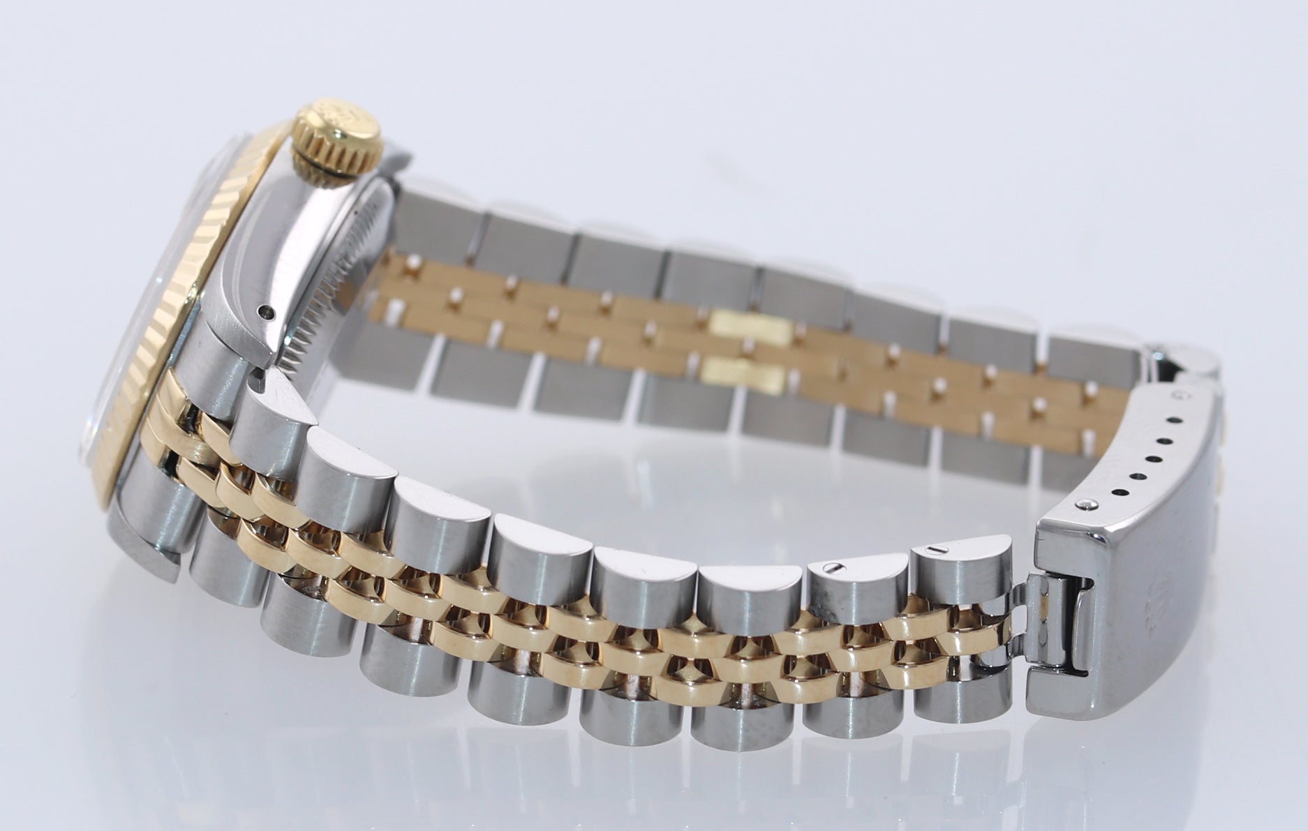 | Band | Original Rolex Two-Tone (18K Yellow Gold/Stainless Steel) Jubilee Bracelet with a folding deployment clasp. Light stretch from use. |