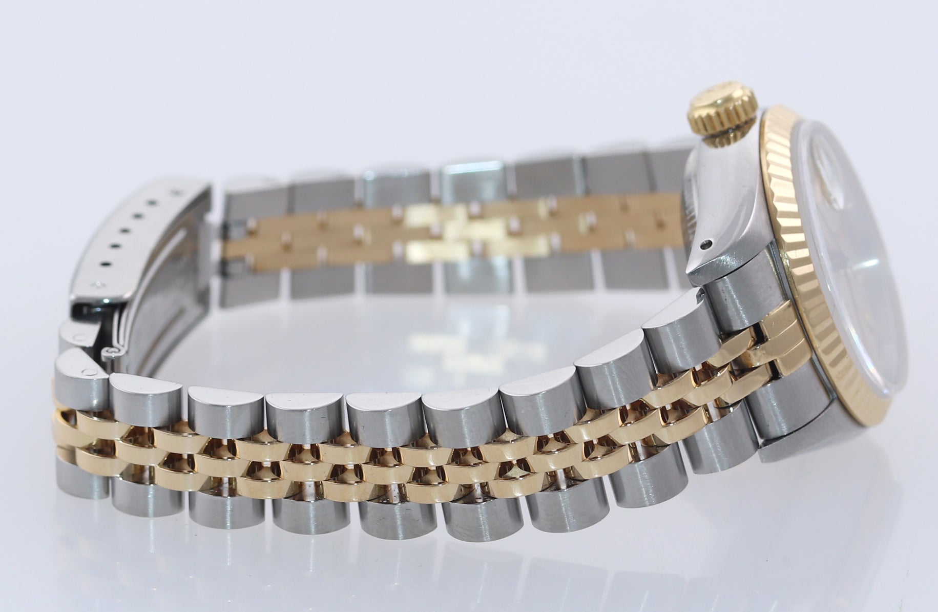 Ladies Rolex 26mm 6913 Two Tone Yellow Gold Steel Date Champagne Dial Watch