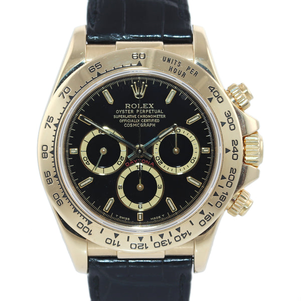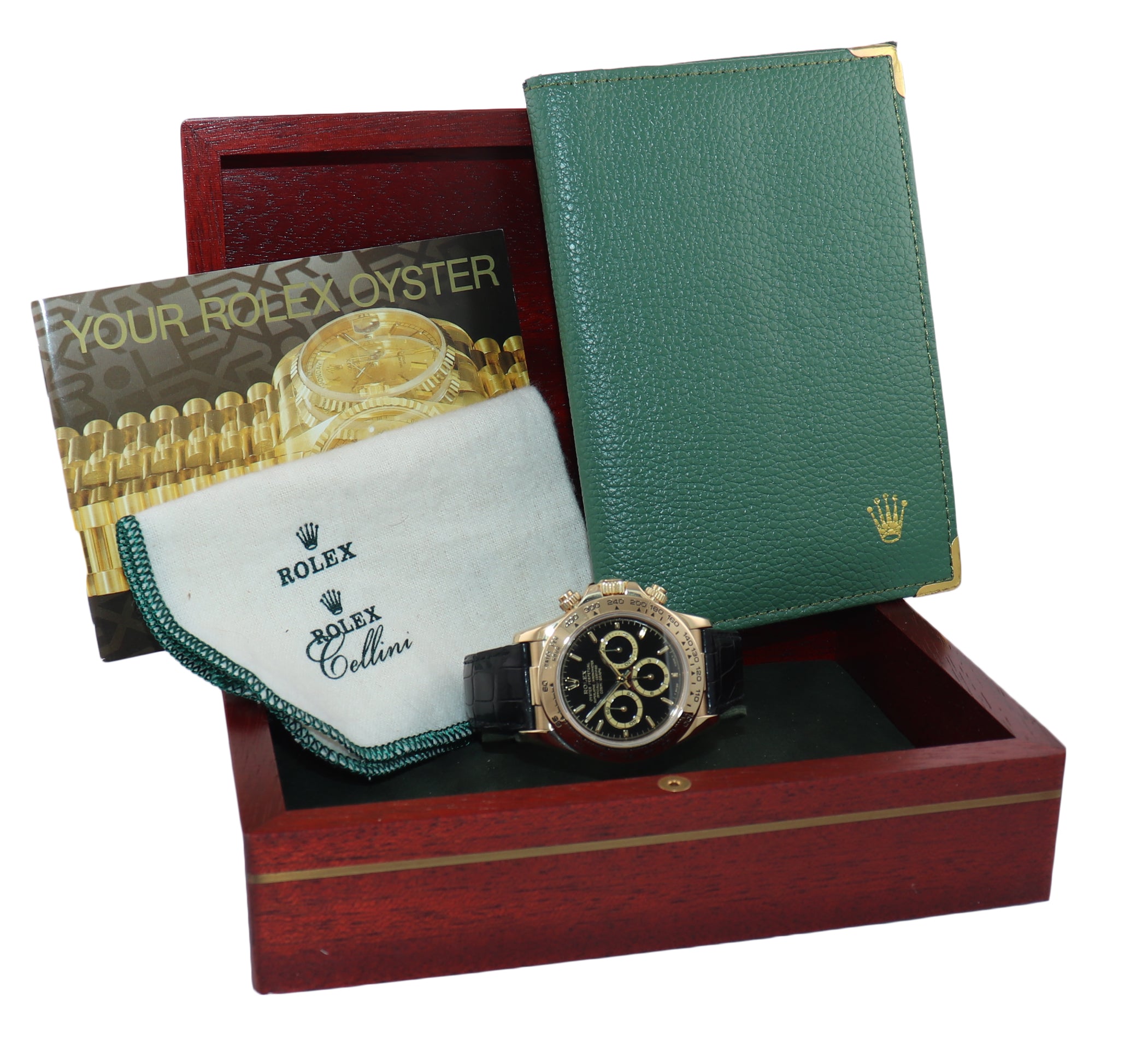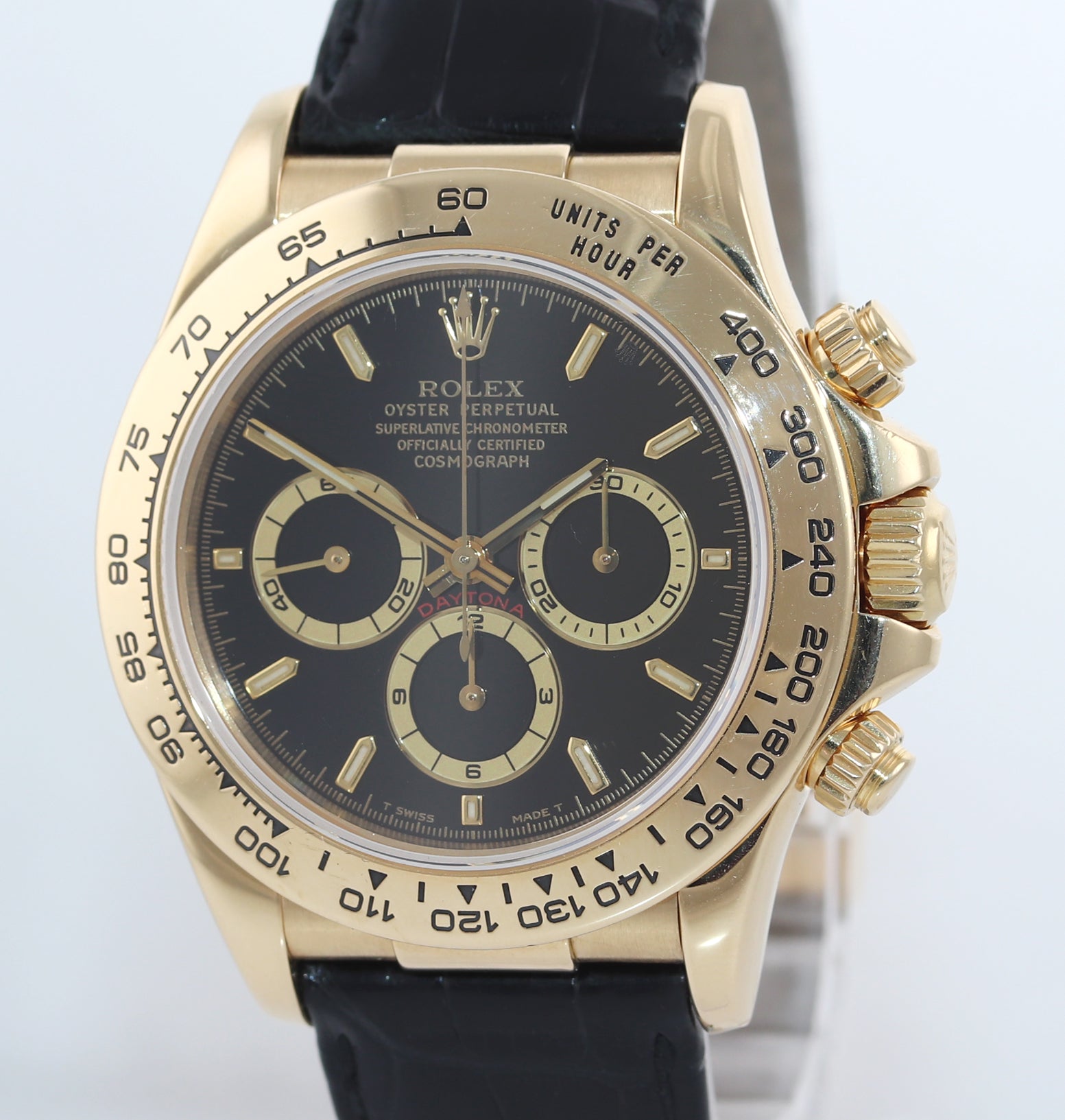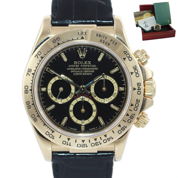 MINT Rolex Daytona Zenith 16518 Black Tritium Dial 18k Yellow Gold Leather Watch Box
