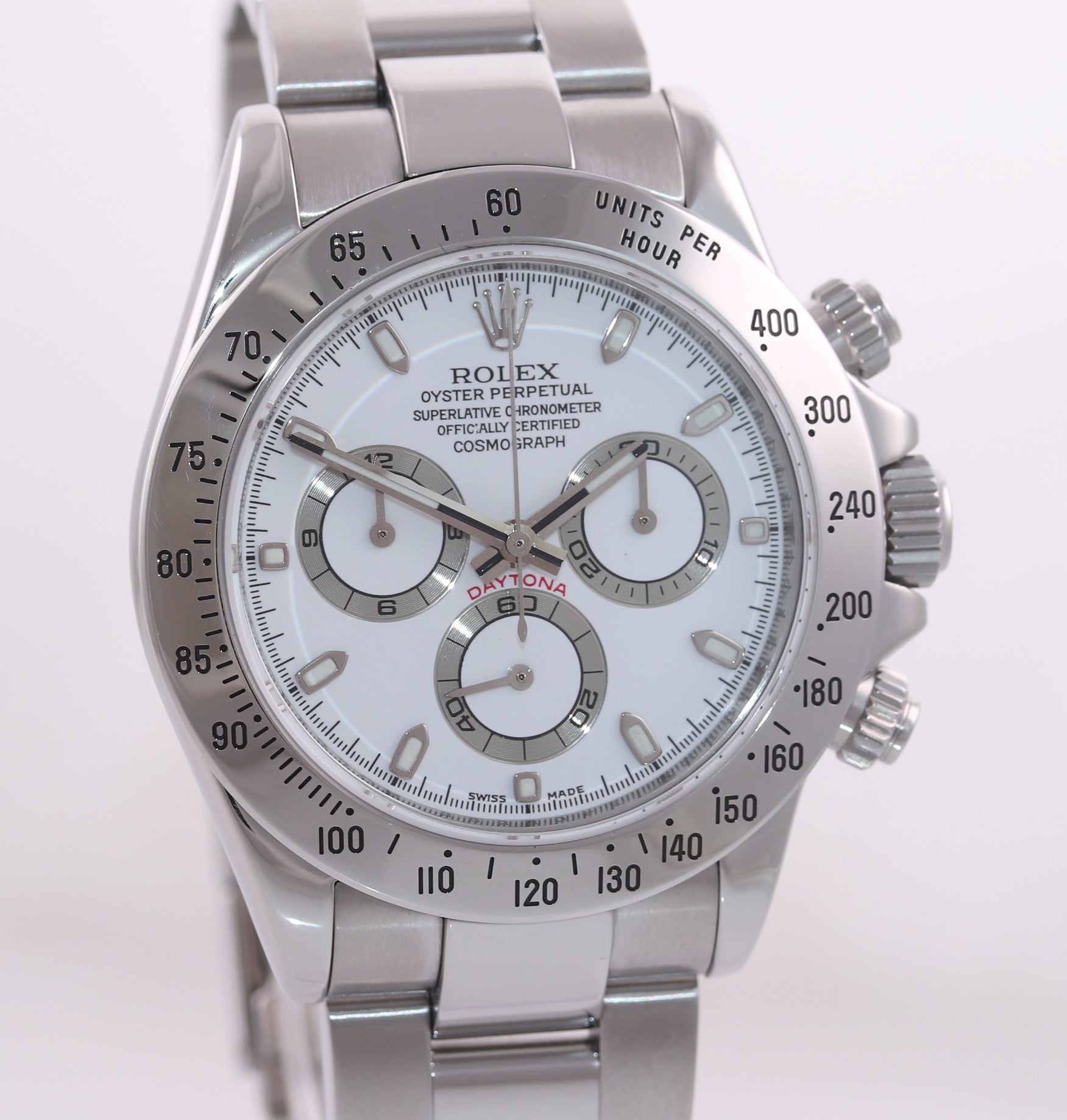 MINT 2007 Rolex Daytona Cosmograph 116520 White Steel Chronograph 40mm Watch