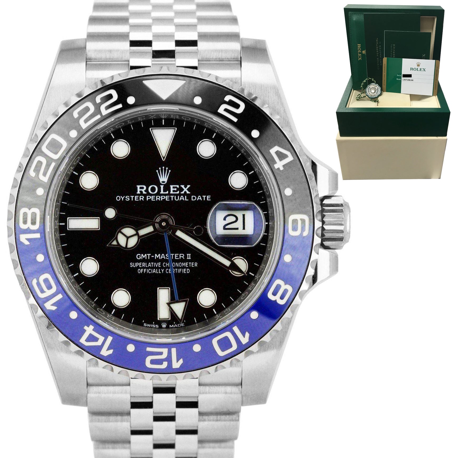 2020 MINT Rolex GMT-Master II Batman Black Blue SS Ceramic 40mm 126710 BLNR