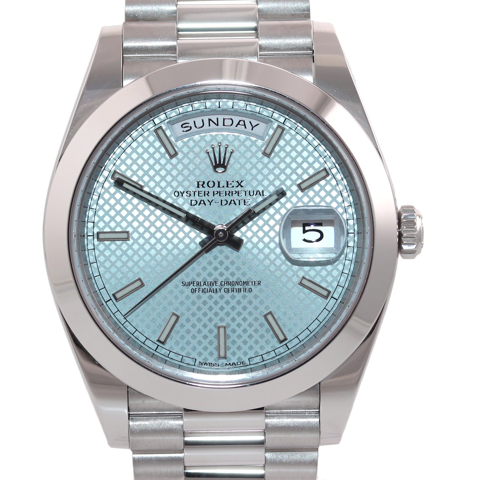 | Dial | Original Rolex Glacier Blue Motif Stick Dial with the day at the 12 o'clock and the date at the 3 o'clock |
