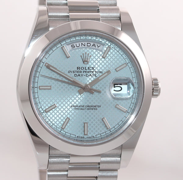 PAPERS NEW 2019 Rolex Platinum President Day Date Blue Motif 228206 Watch Box