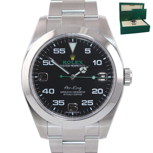 2020 Rolex Air King 116900 Black Arabic Dial 40mm Steel Green Watch Box