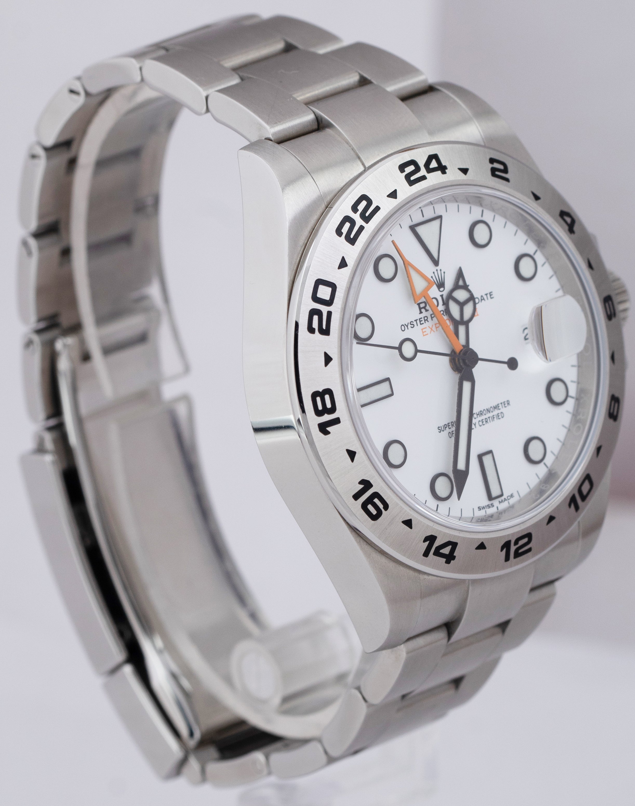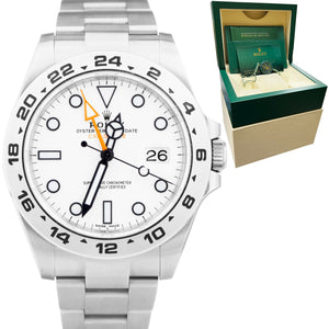 2020 Rolex Explorer II White Orange Stainless 42mm GMT Date Watch 216570 B+P