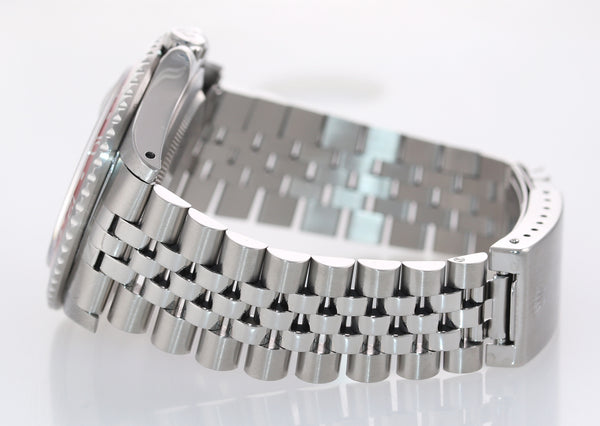 | Dial | Original Rolex Black Tritium Dial with date at the 3 o'clock and a Red 24-hour GMT hand. |