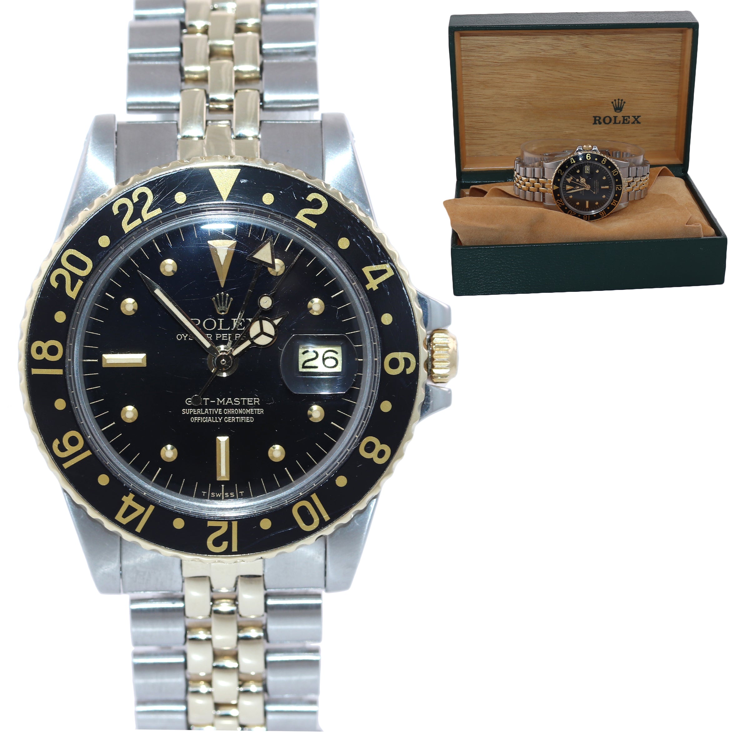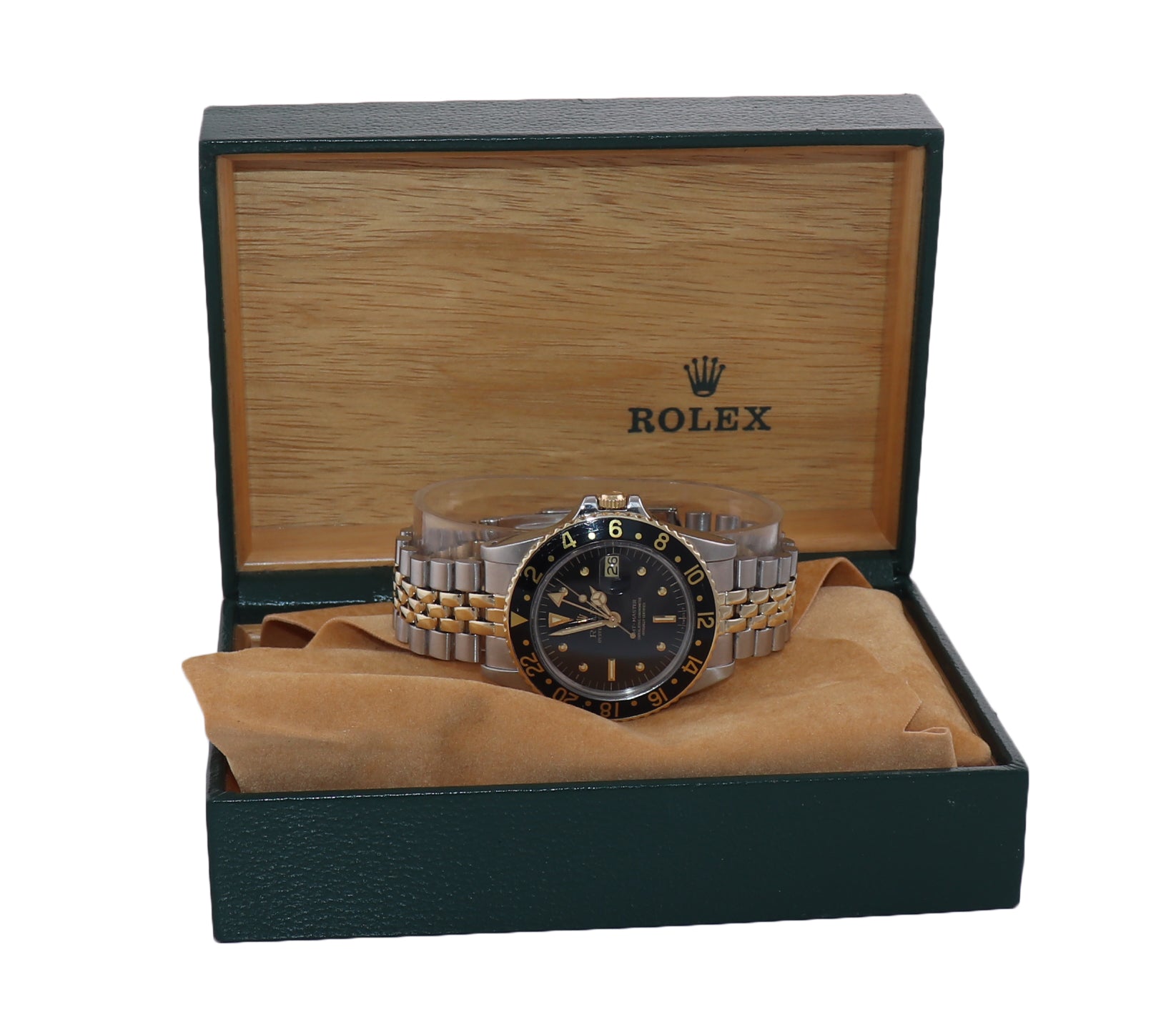 Rolex GMT-Master 1675 Jubilee Two-Tone Nipple Steel Gold Black Dial Watch Box