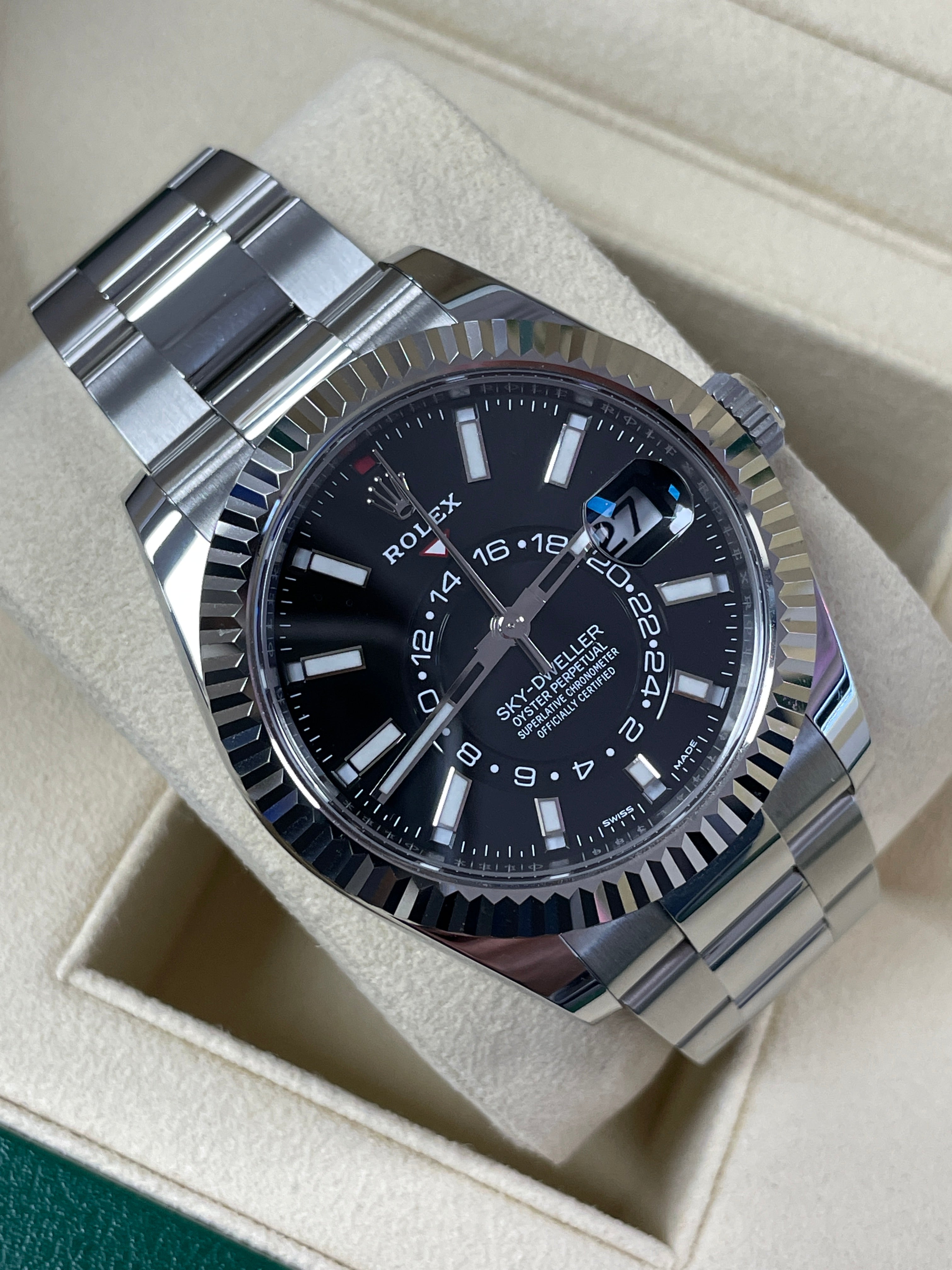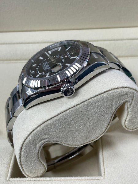 2020 UNPOLISHED Rolex Sky-Dweller Stainless White Gold Black 42mm Watch 326934