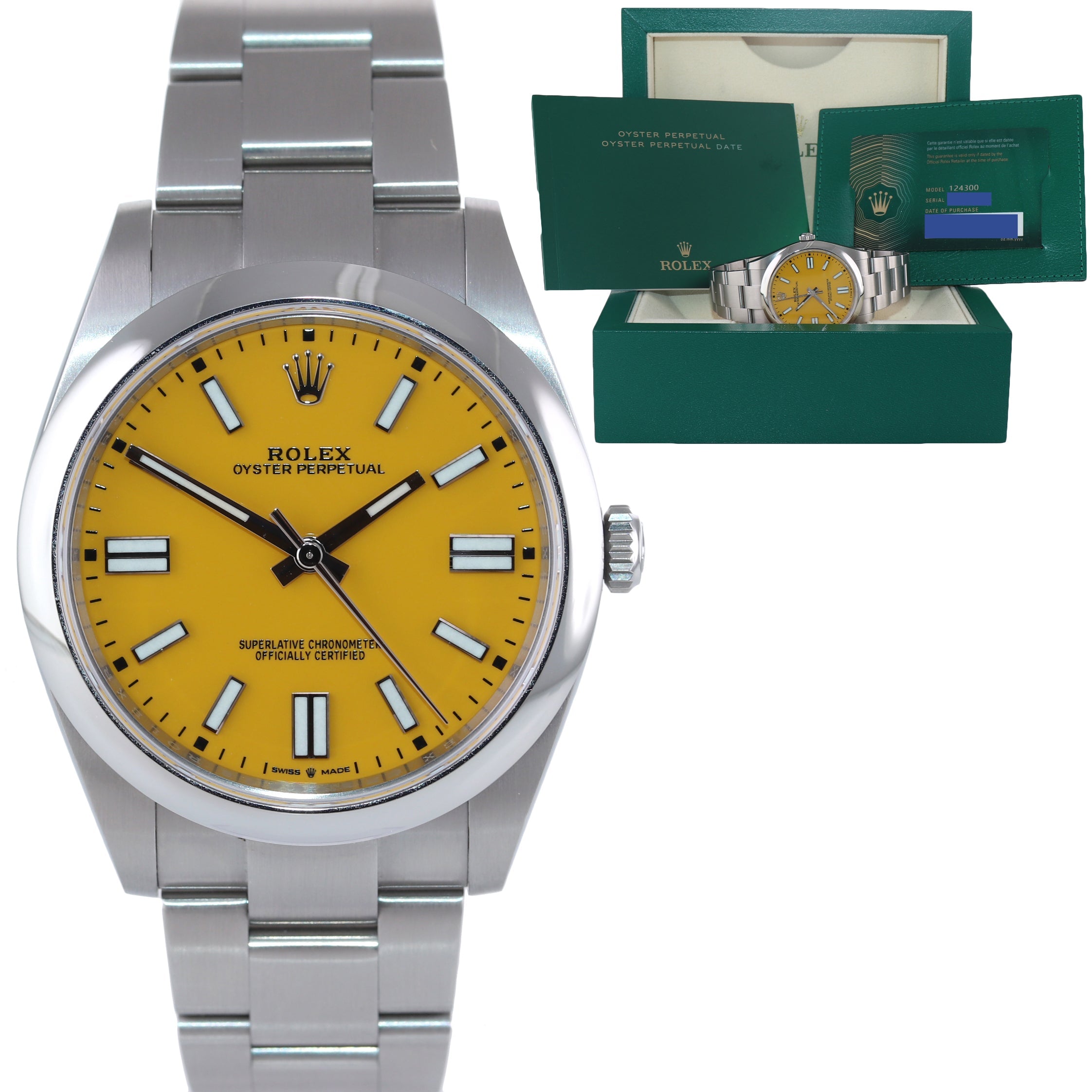 2021 PAPERS Rolex Oyster Perpetual 41mm Yellow Oyster Watch 124300