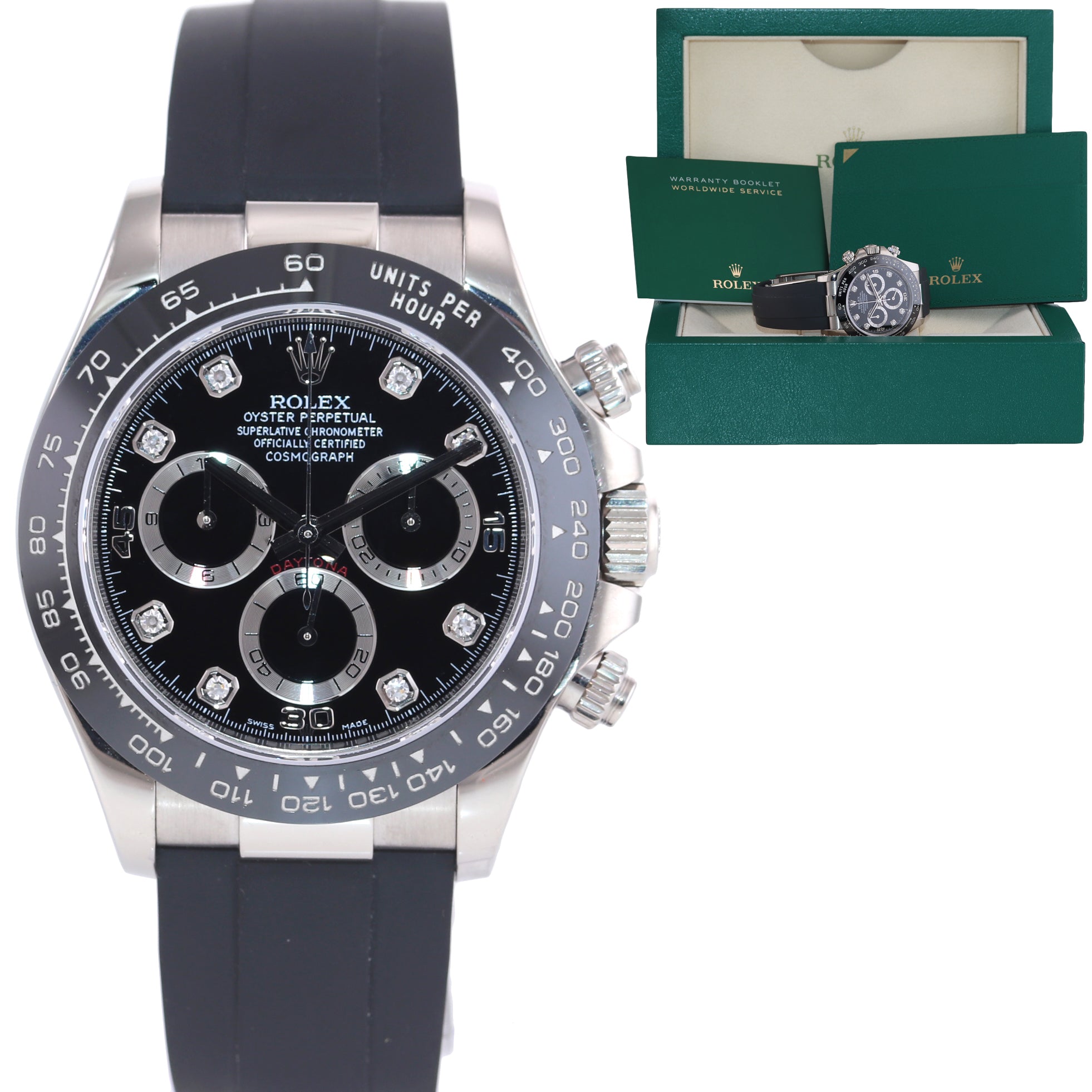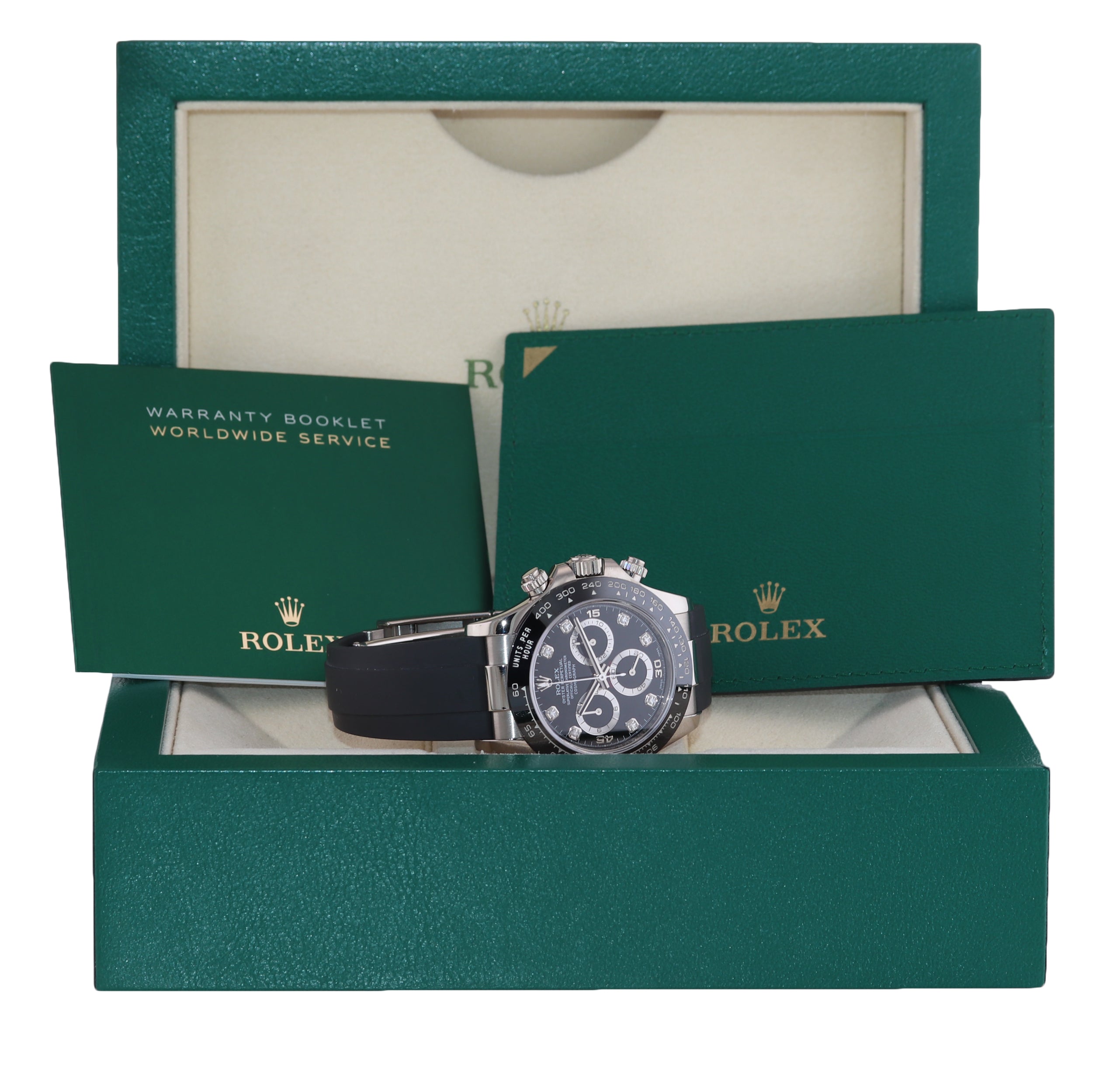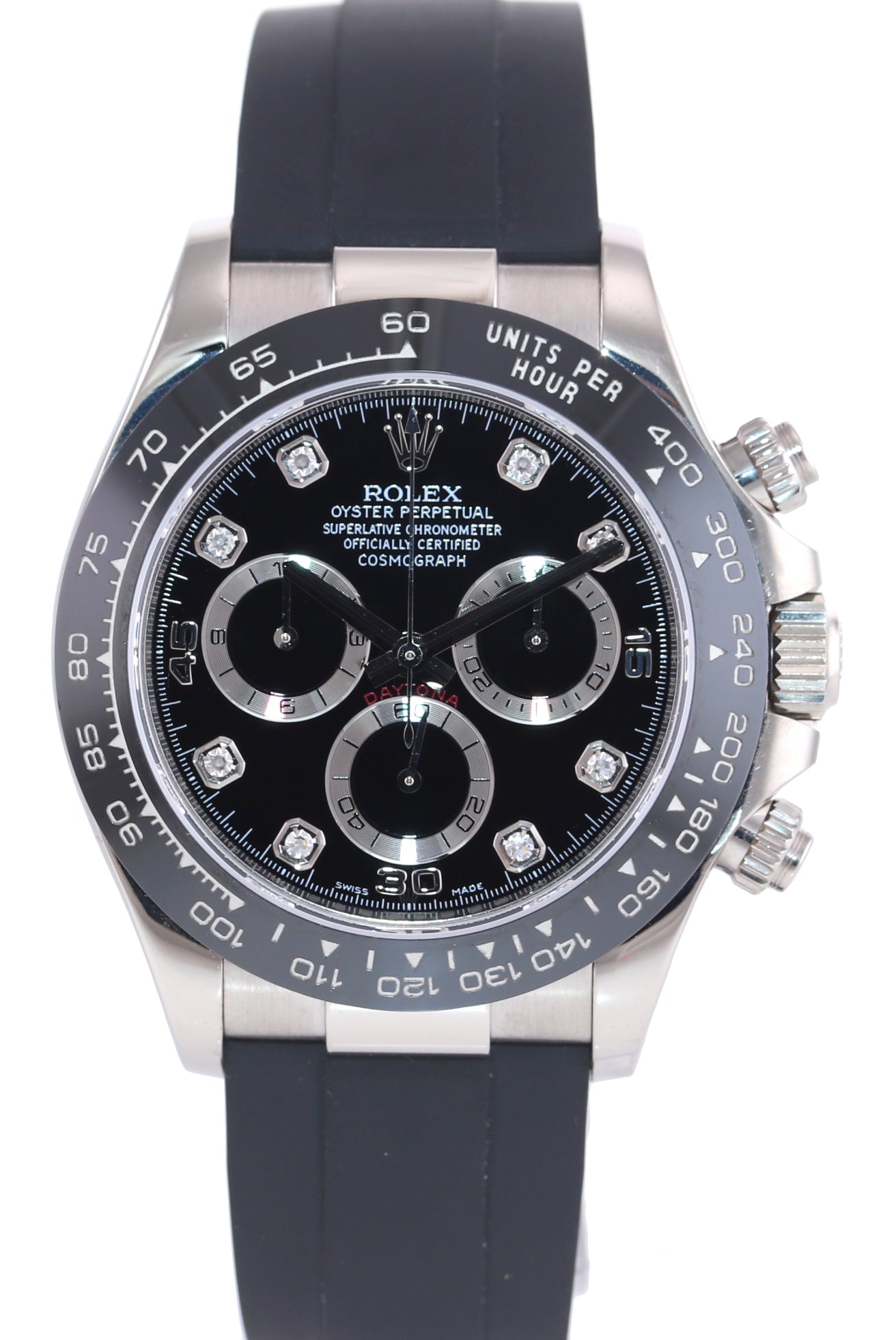 | Bezel | Rolex Black Ceramic Bezel with an engraved tachymetric scale |