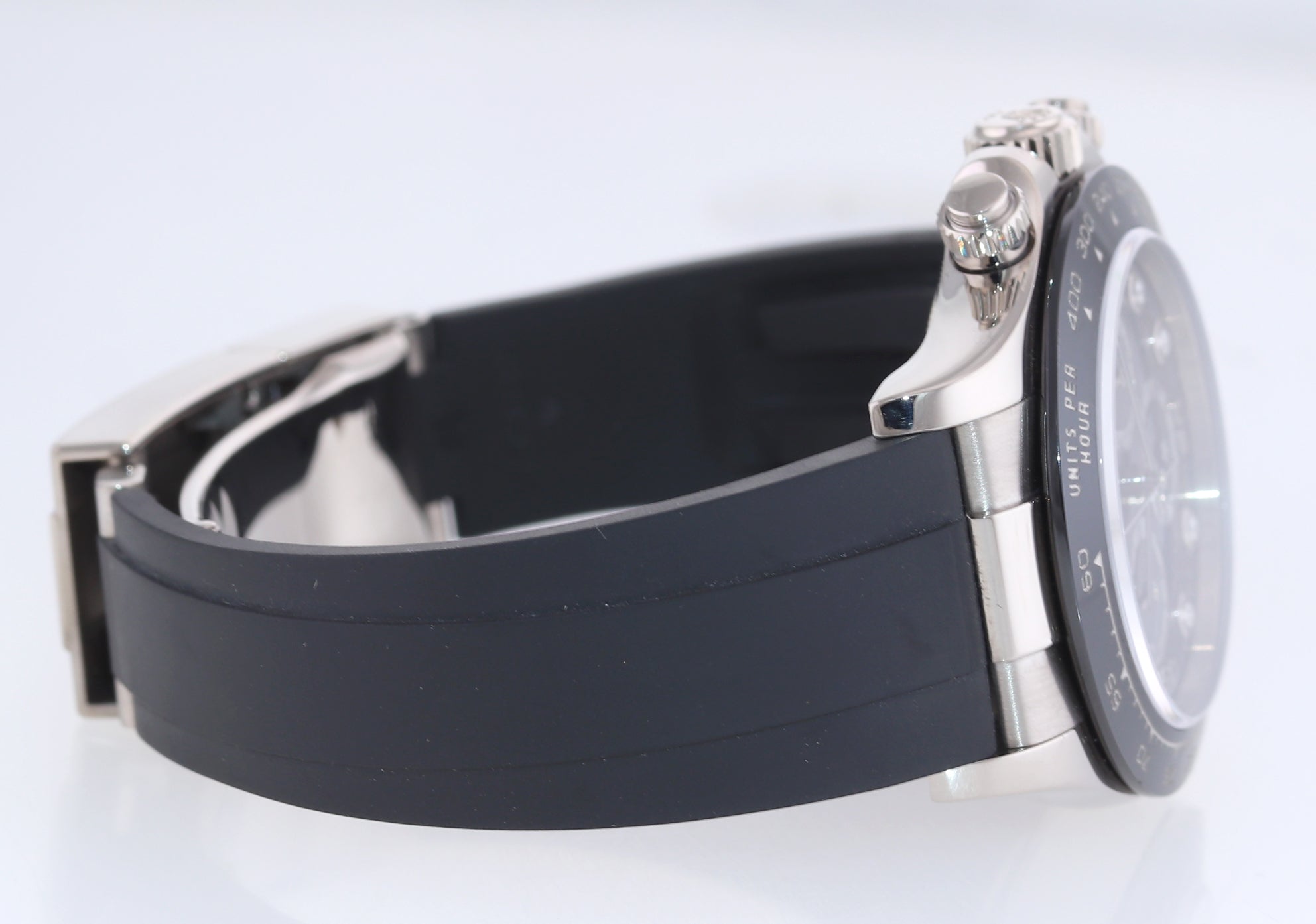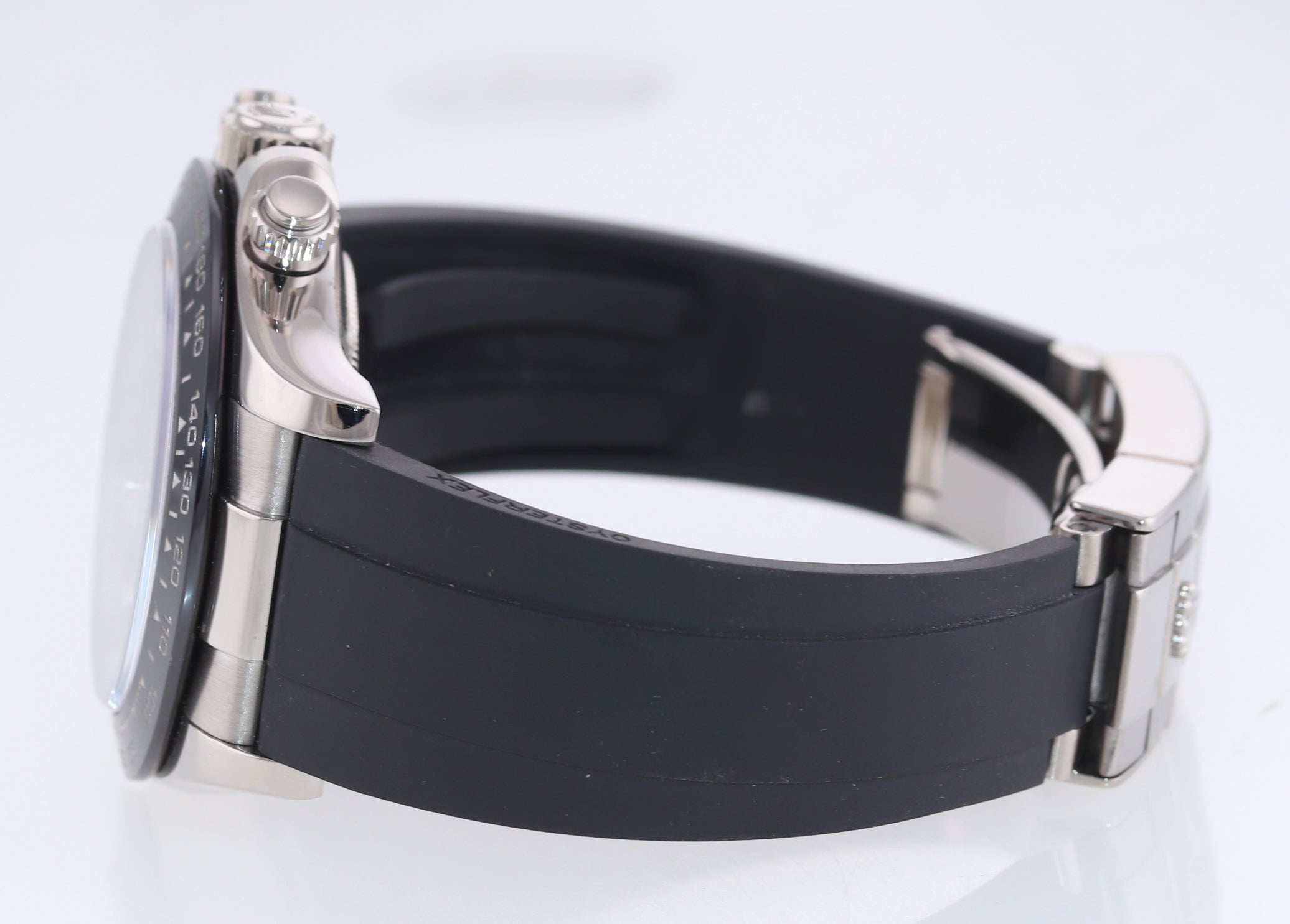 | Band | Rolex Oysterflex Rubber Strap with a Flip Lock extendable 18k White Gold Deployment Clasp |