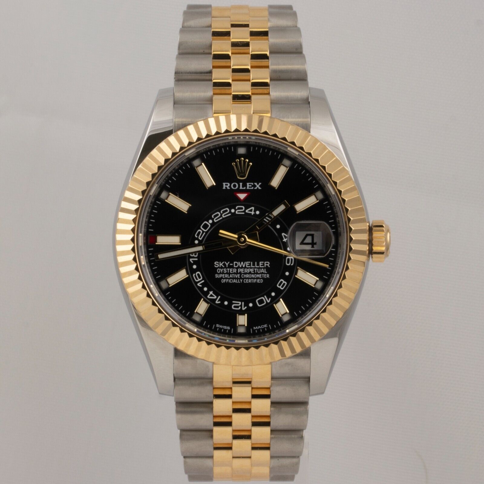 2021 Rolex Sky-Dweller 18k Yellow Gold Stainless 42mm Watch 326933 BOX + PAPERS