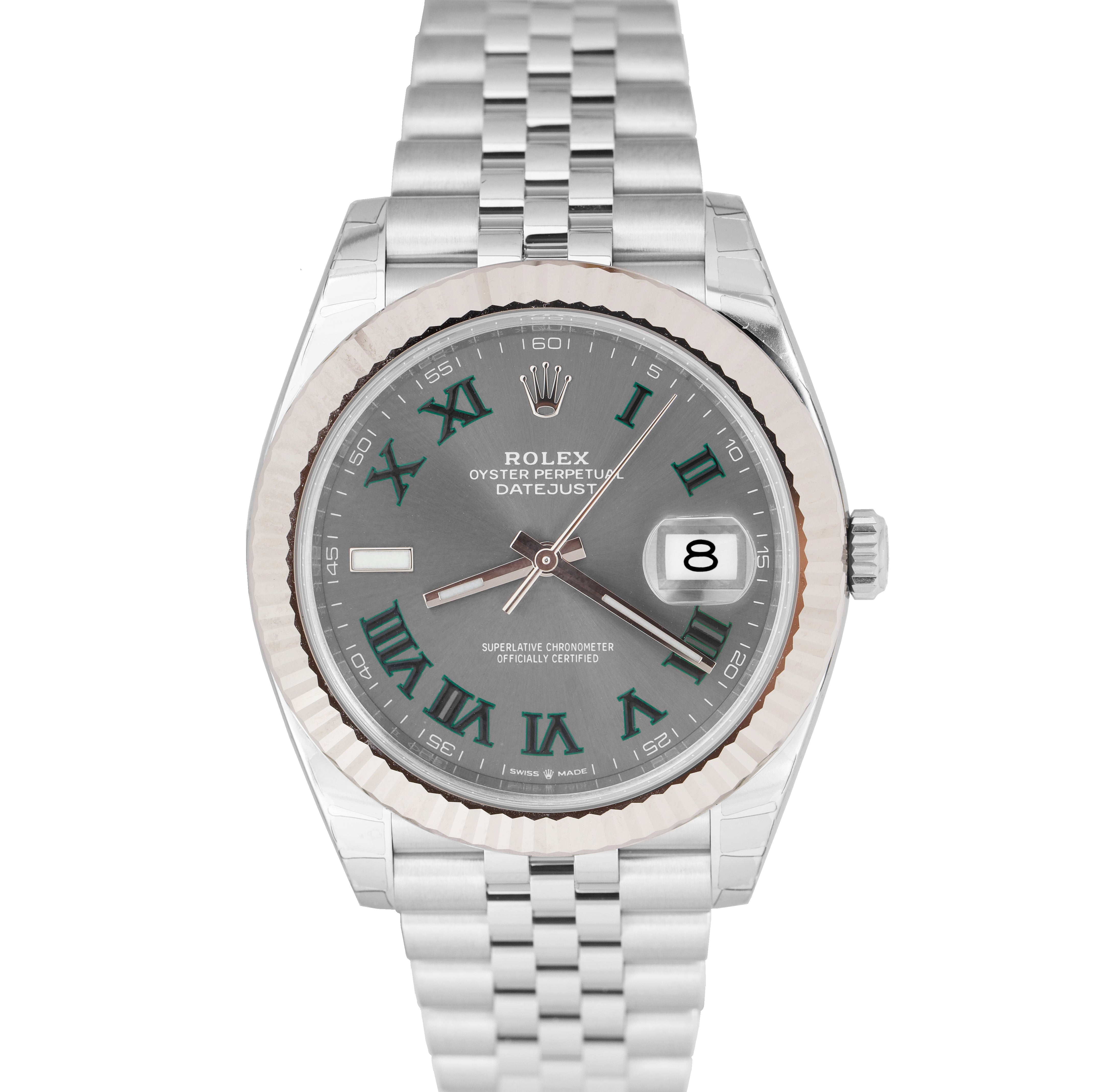 2021 STICKERED Rolex DateJust Wimbledon Grey 41mm Fluted Jubilee Watch 126334