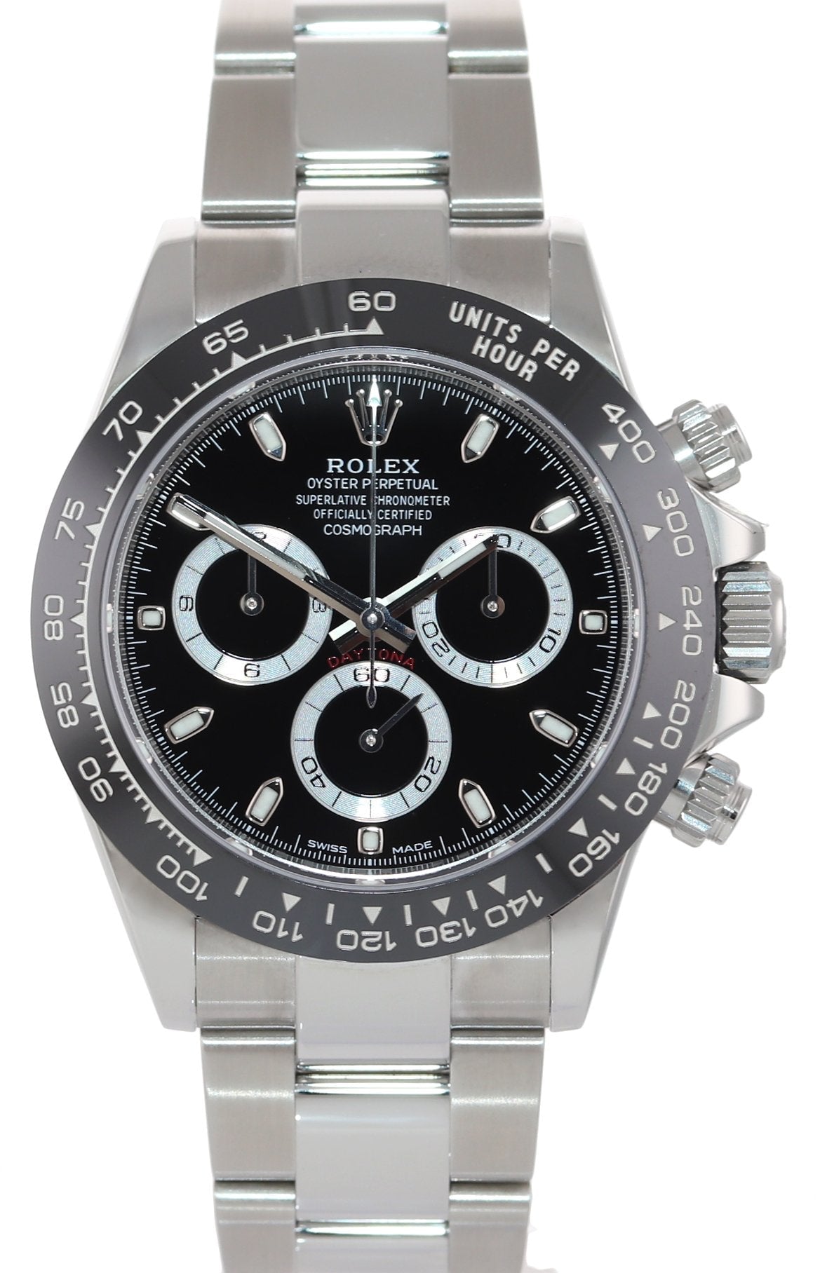 | Bezel | Rolex Fixed Black Ceramic Bezel with an engraved tachymetric scale |
