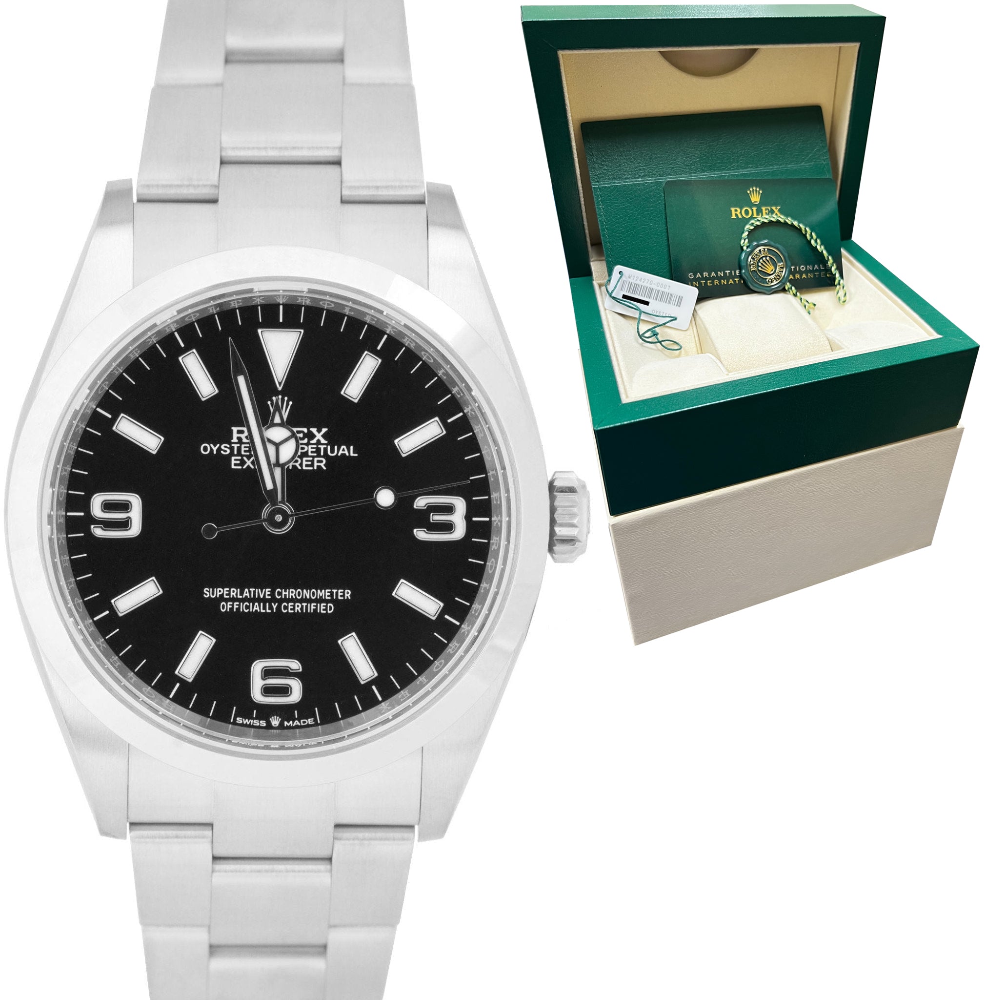 2022 Rolex Explorer I Black 36mm Stainless Steel Oyster Watch 124270 BOX PAPERS
