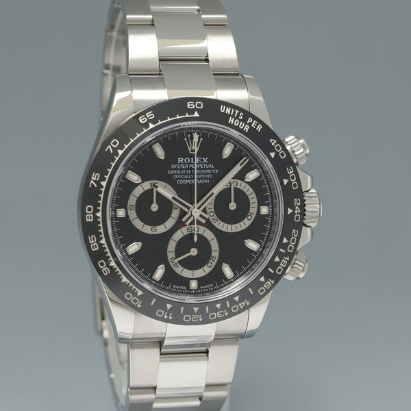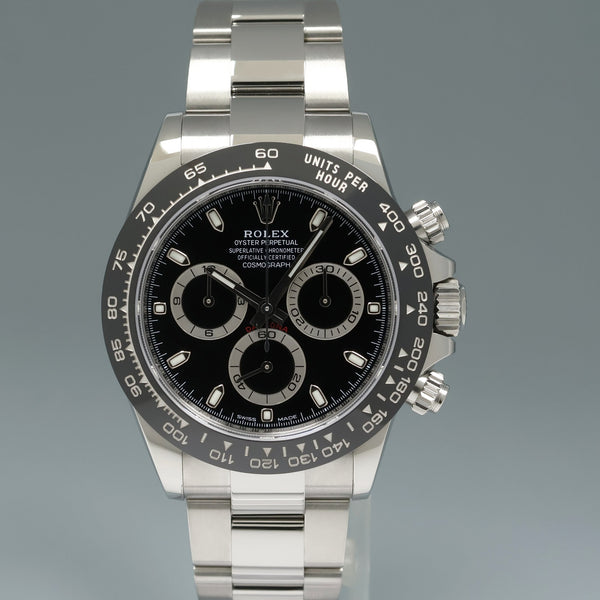 | Bezel | Rolex Black Ceramic Bezel with an engraved tachymetric scale |