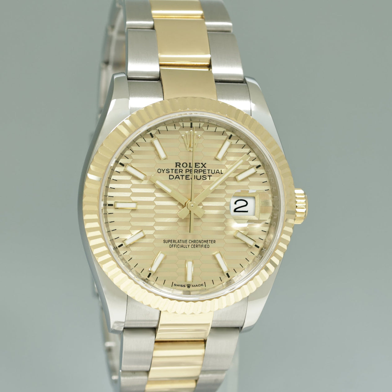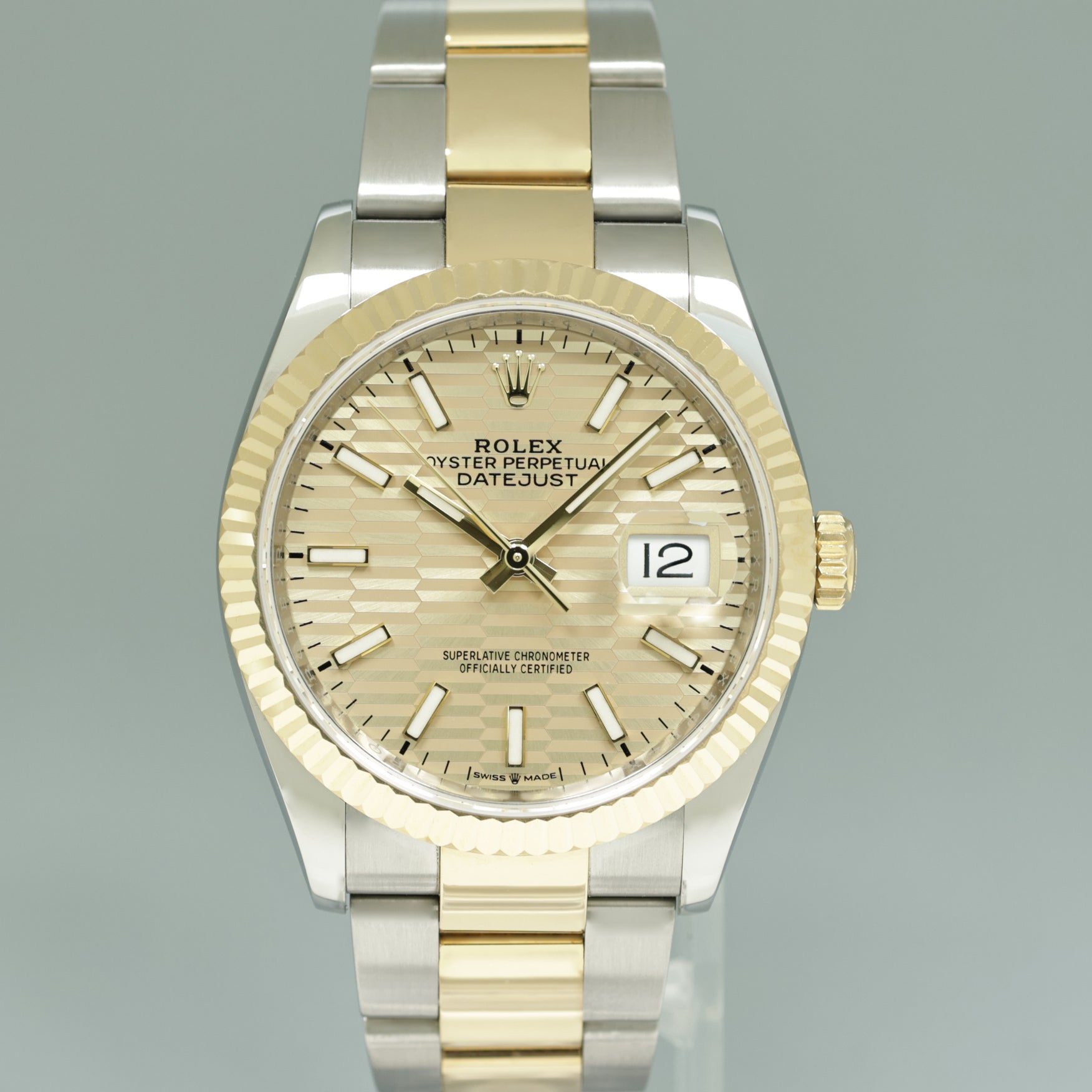 | Bezel | Rolex Fluted Yellow Gold Bezel |
