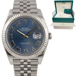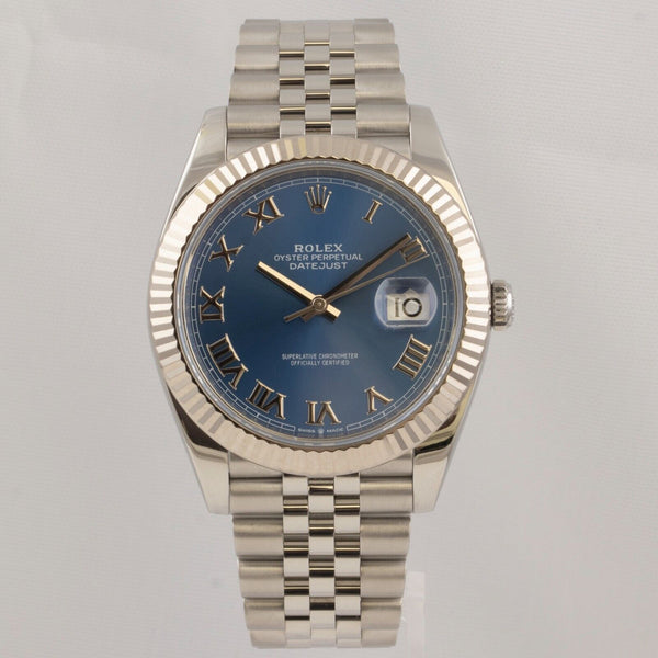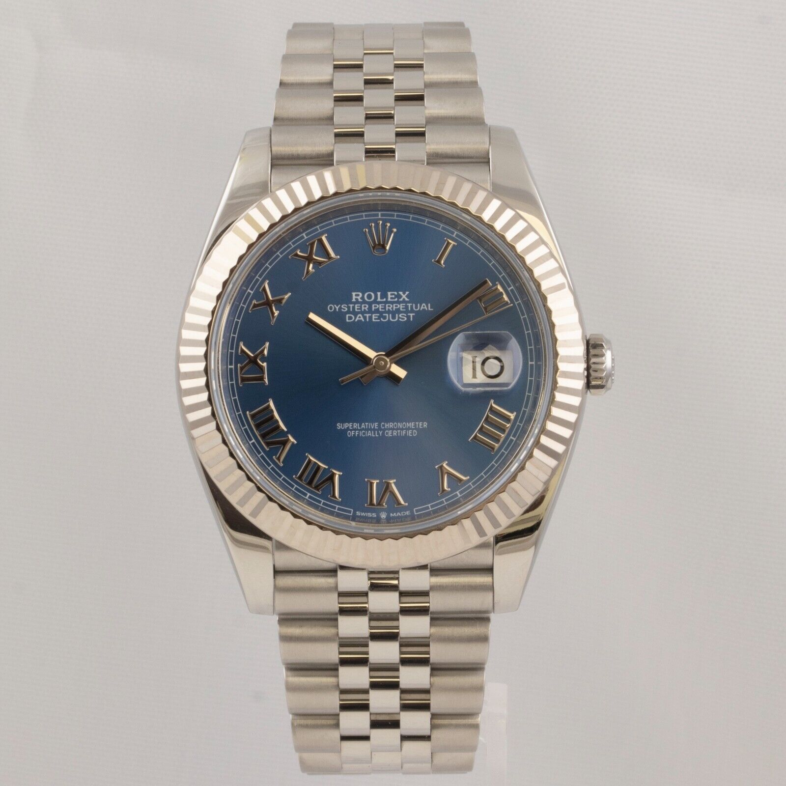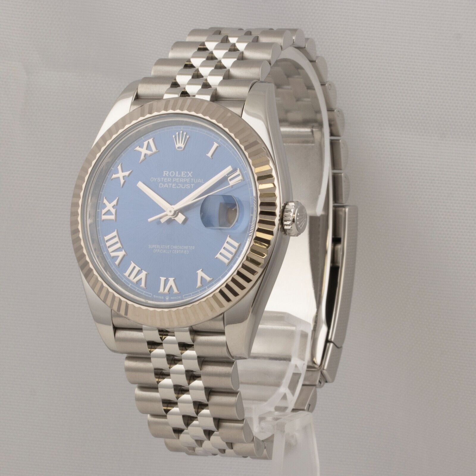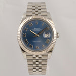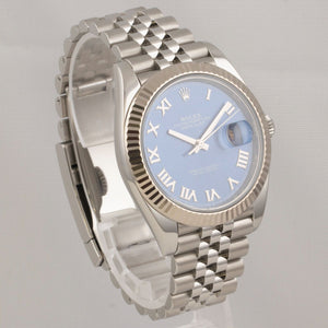 | Dial | Rolex Azzurro Blue Roman Dial with the date at the 3 o'clock, Silver Hands & Indices |