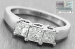 14K White Gold Princess Cut Three Stone 1.10CTW  Diamond Engagement Ring Size 6