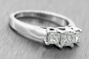 $4,285 Ladies Estate 14K White Gold 1.10ctw Three Square Diamond Engagement Ring