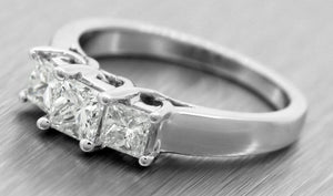 14K White Gold Princess Cut Three Stone 1.10CTW Diamond Engagement Ring Size 6