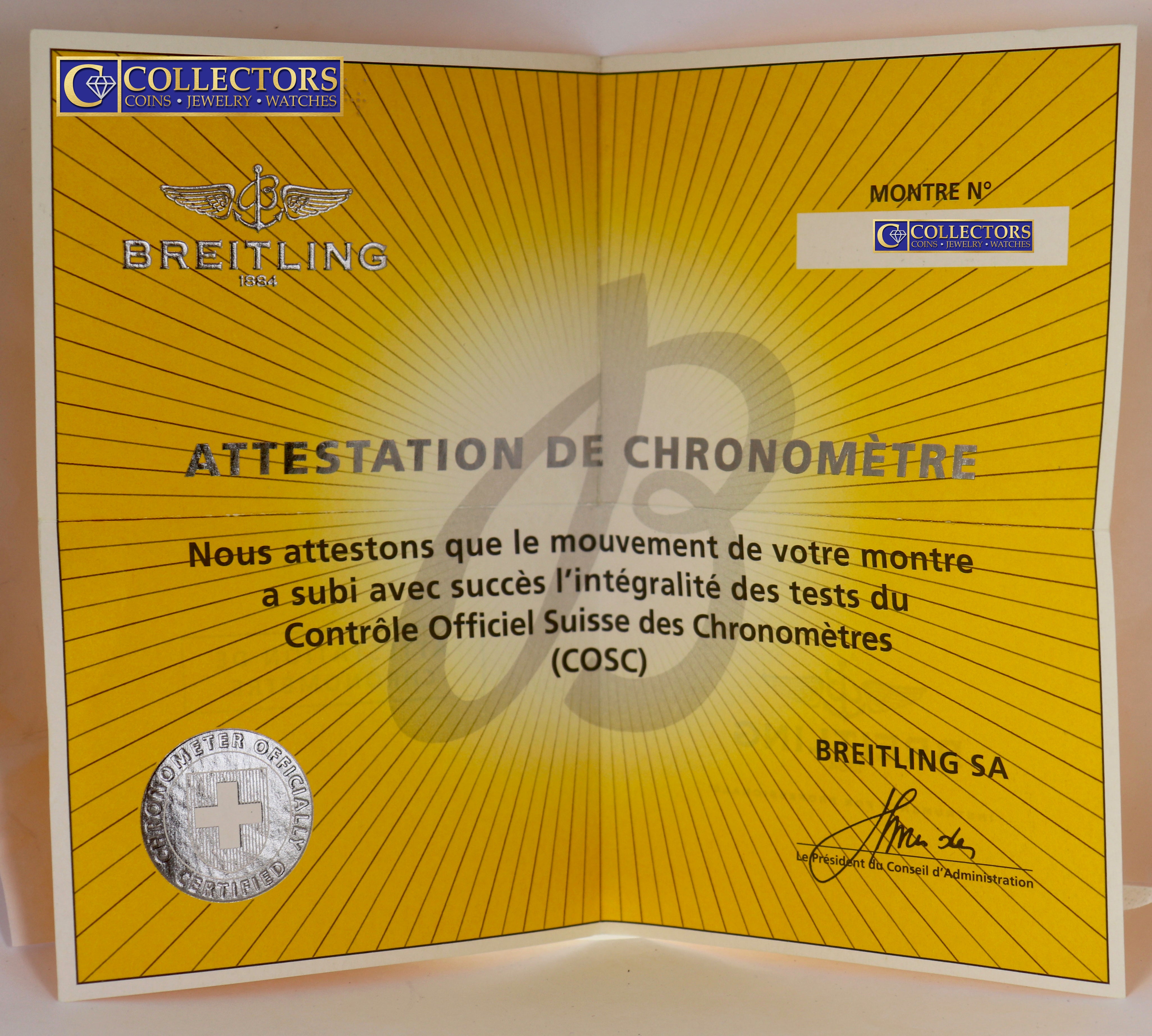 | Movement | Original Breitling Swiss Automatic Movement with a chronograph and quickset date function |