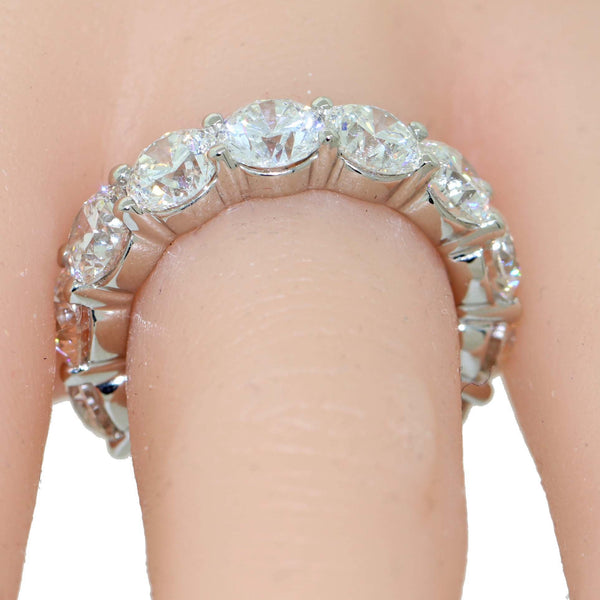 For your consideration, a beautiful 9.15ctw Round Cut GIA Diamond 5mm Platinum Shared Prong Eternity Wedding Band Ring. Every diamond on this eternity hand has individually been graded and inscribed by GIA and will come with the Original GIA diamond grading report also pictured. This piece will come in a lovely ring box for a perfect presentation and our unconditional 30 day money back return policy.