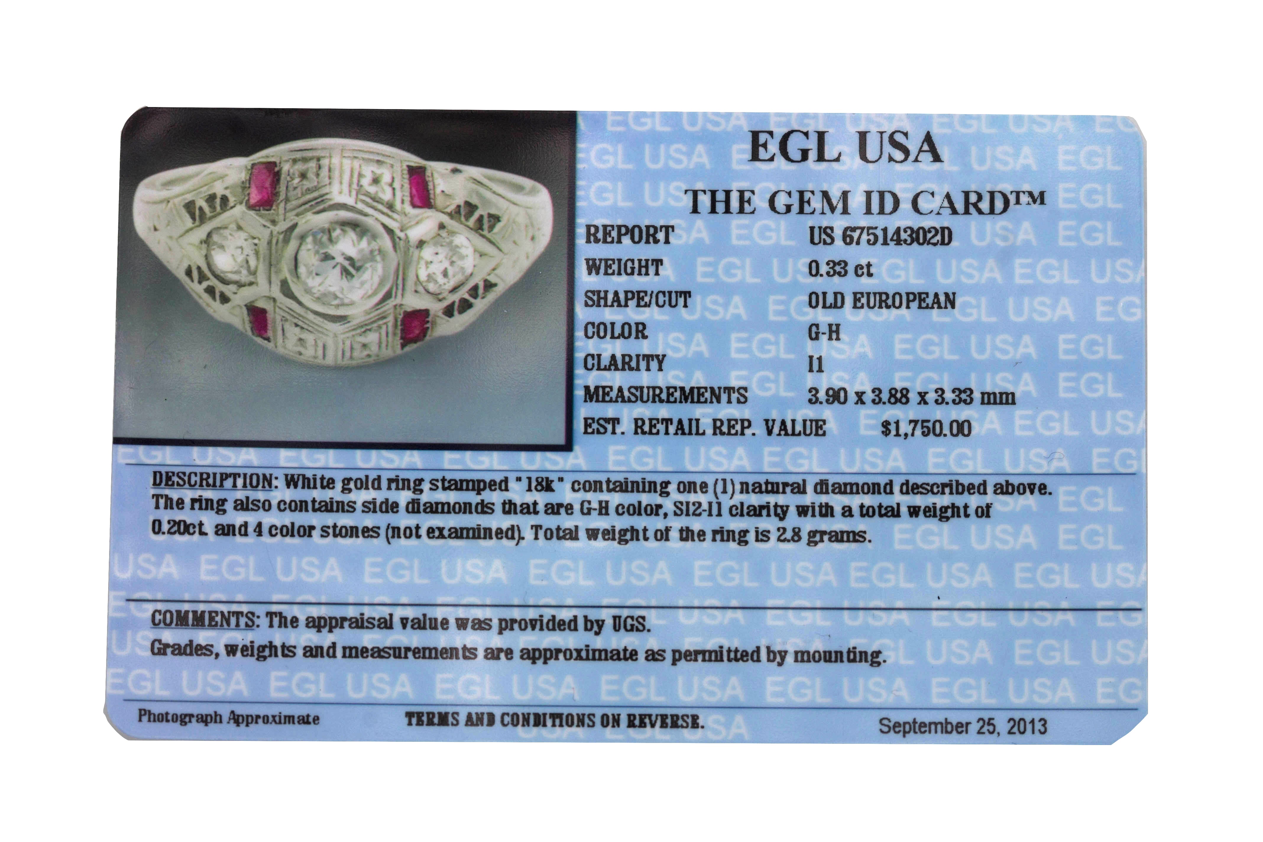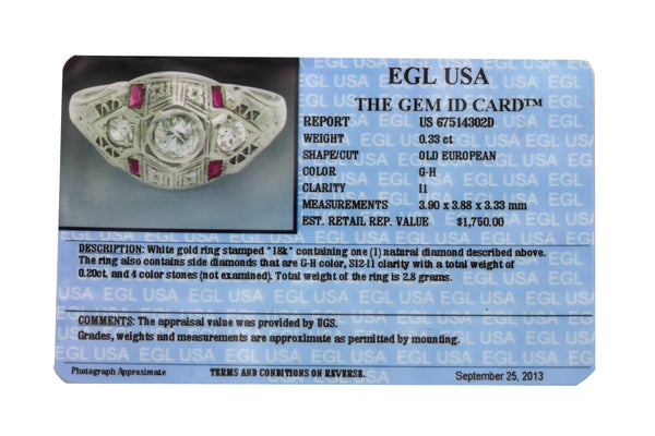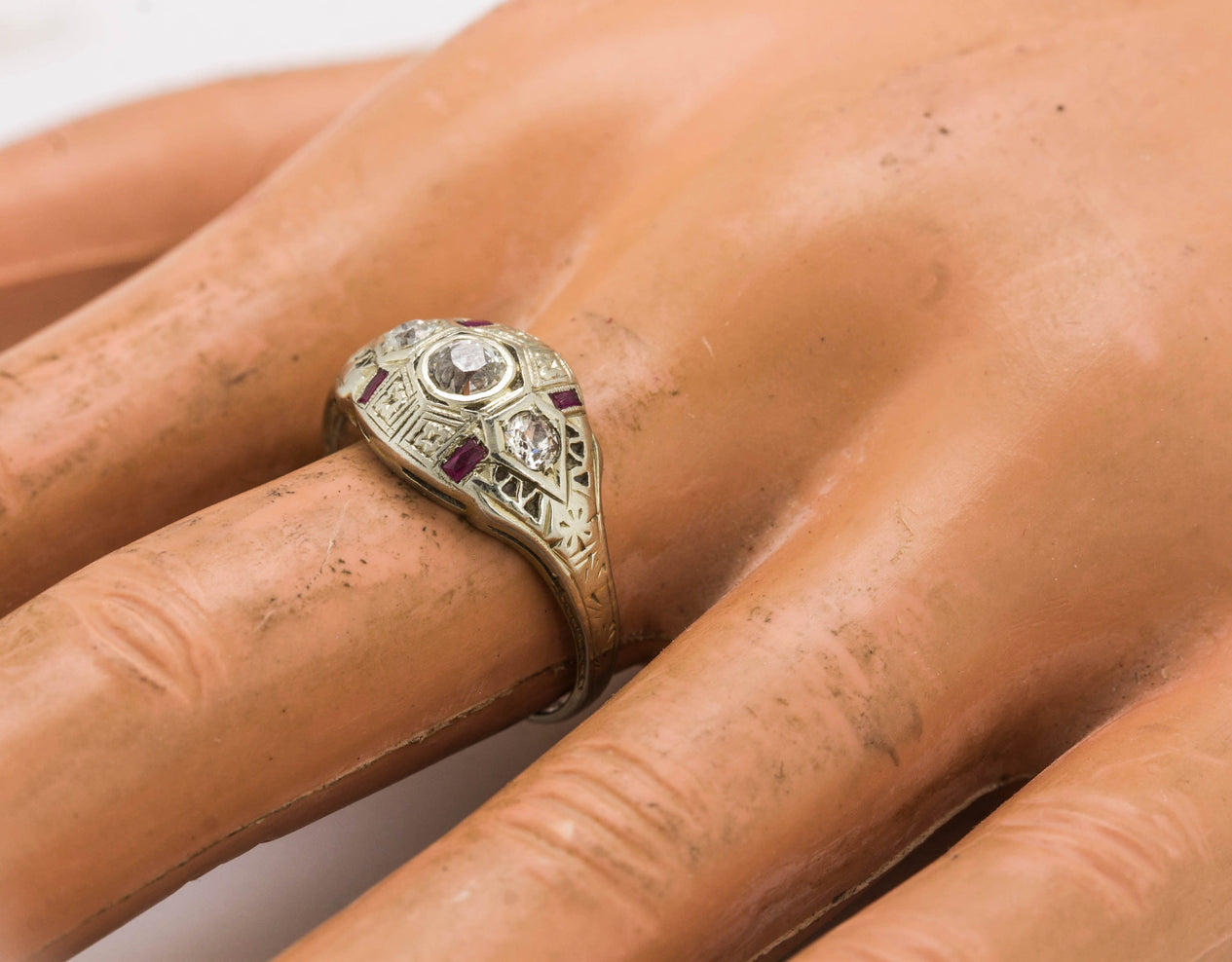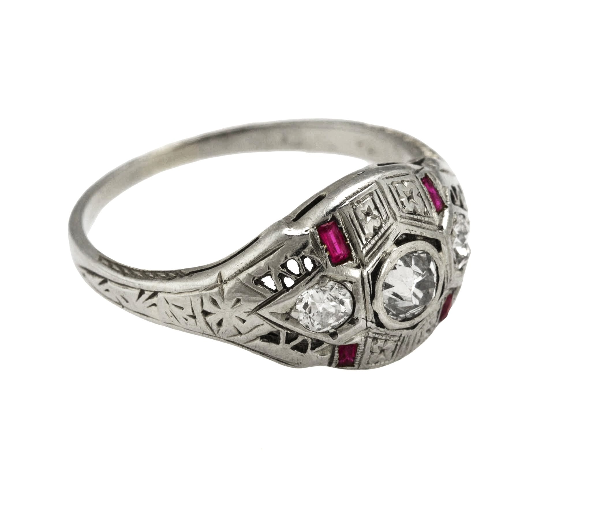 Antique Art Deco 18K White Gold 0.33CT Old European Cut Diamond Filigree Ring