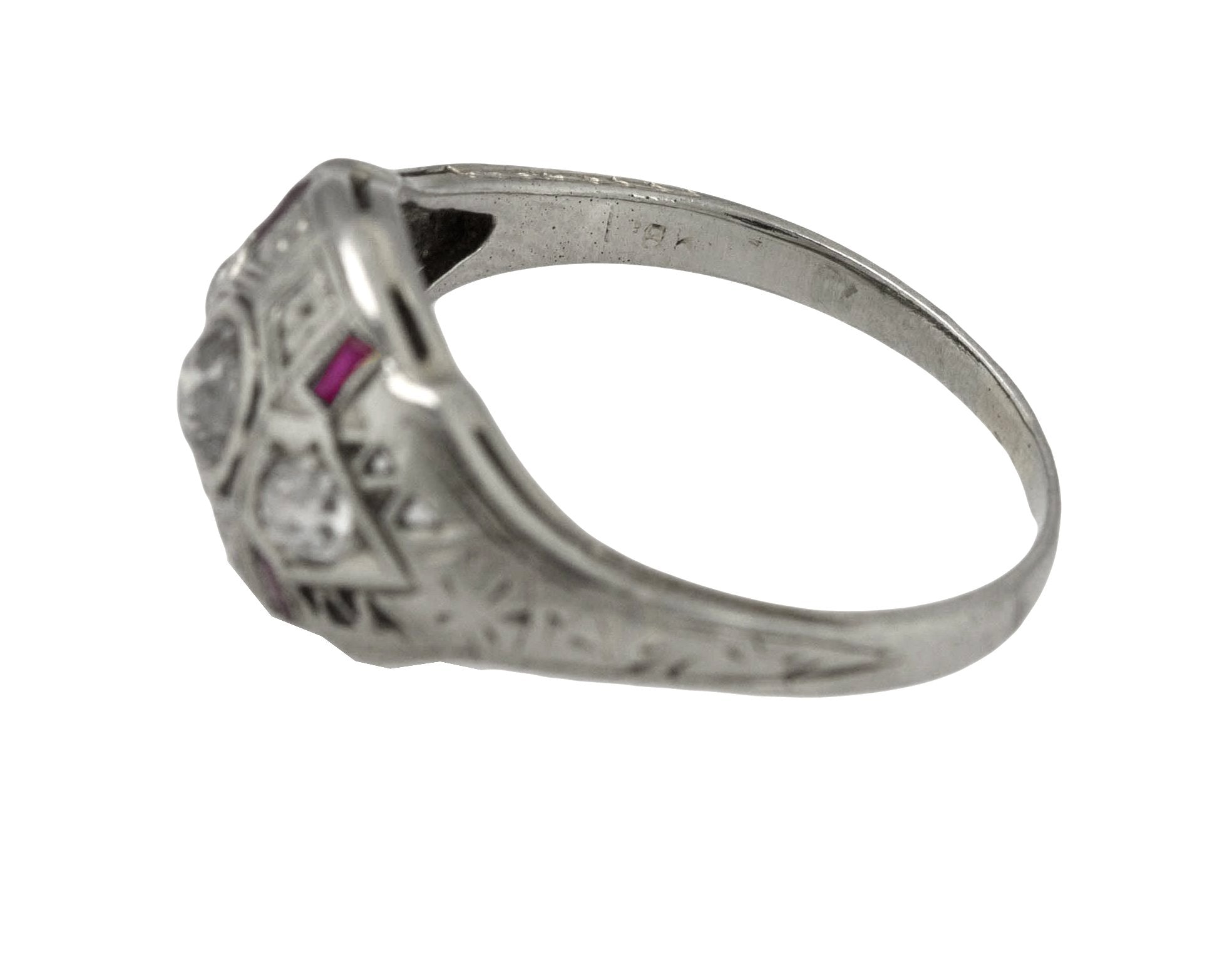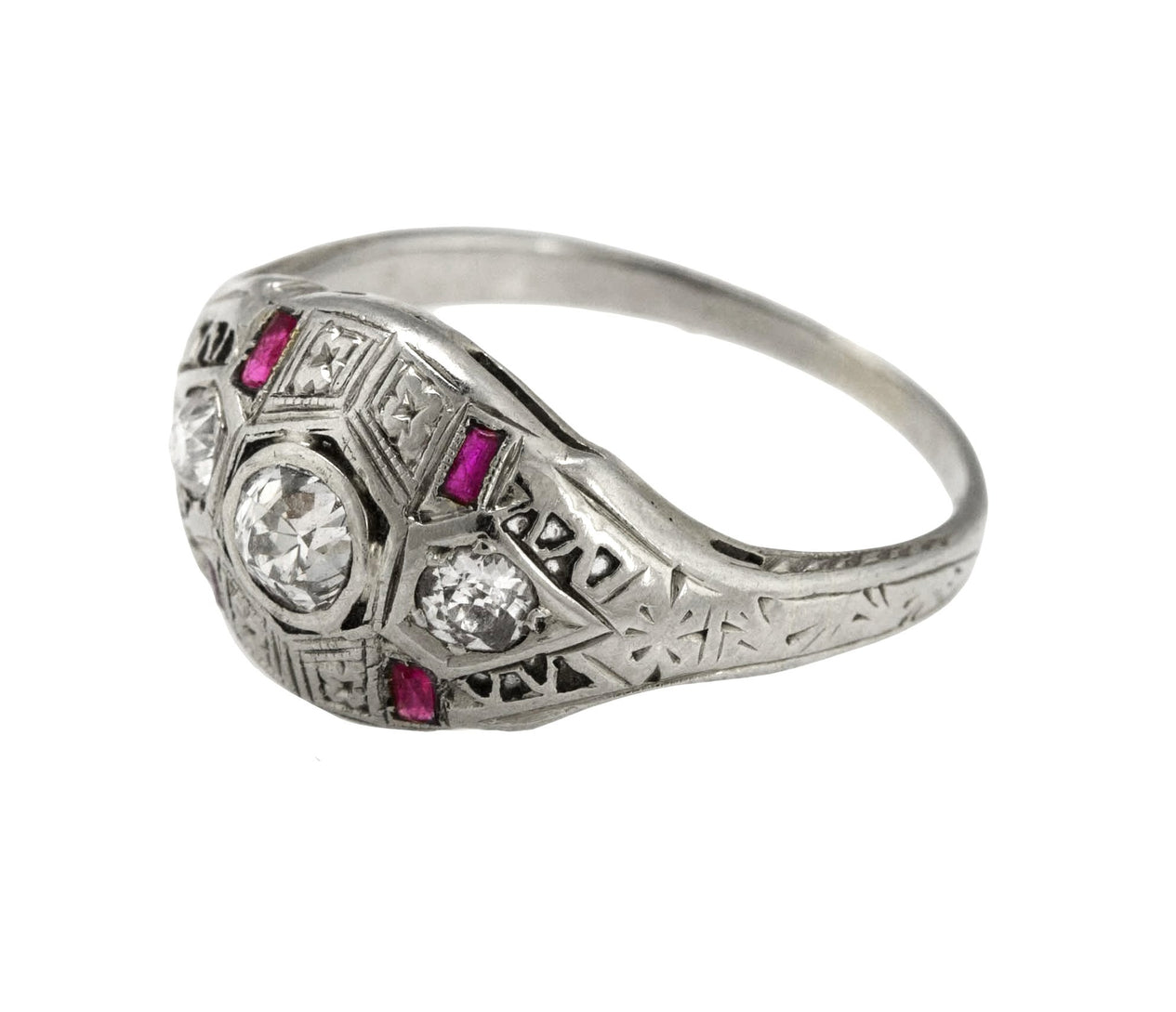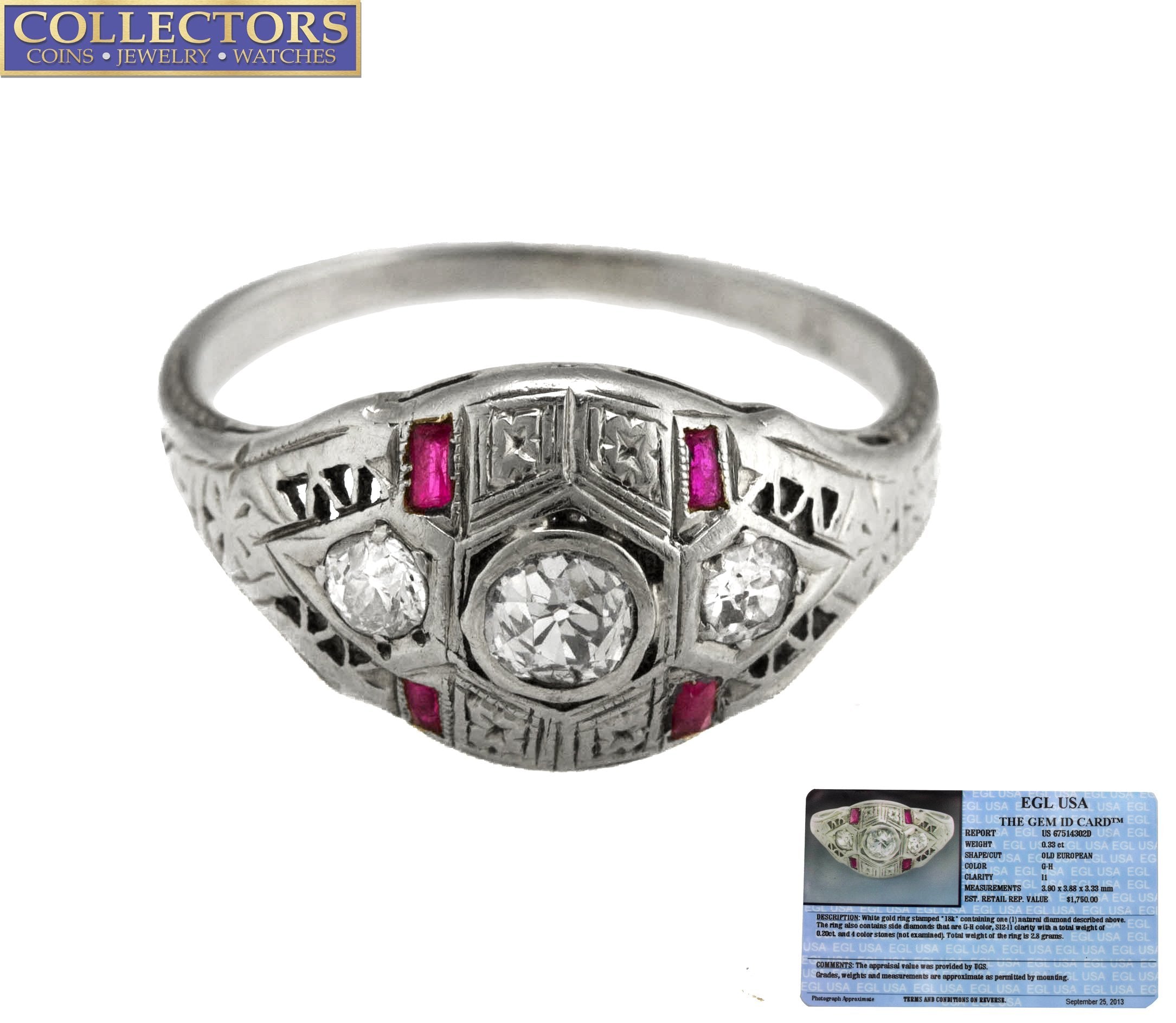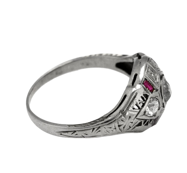 Antique Art Deco 18K White Gold 0.33CT Old European Cut Diamond Filigree Ring