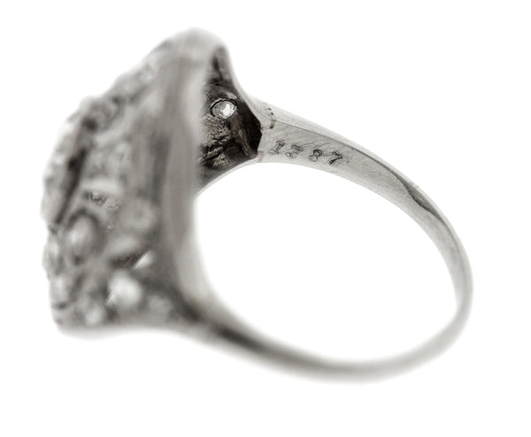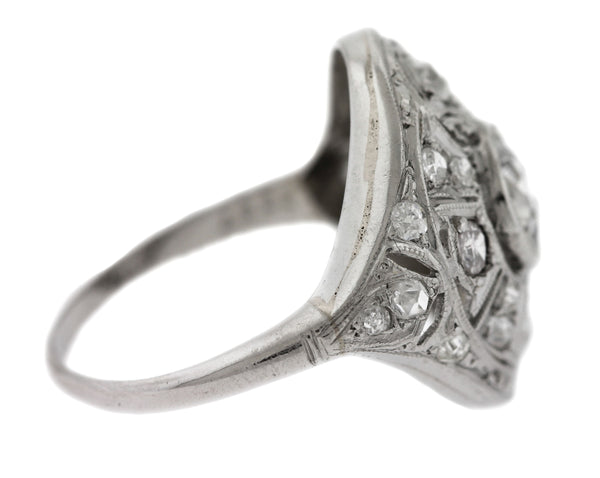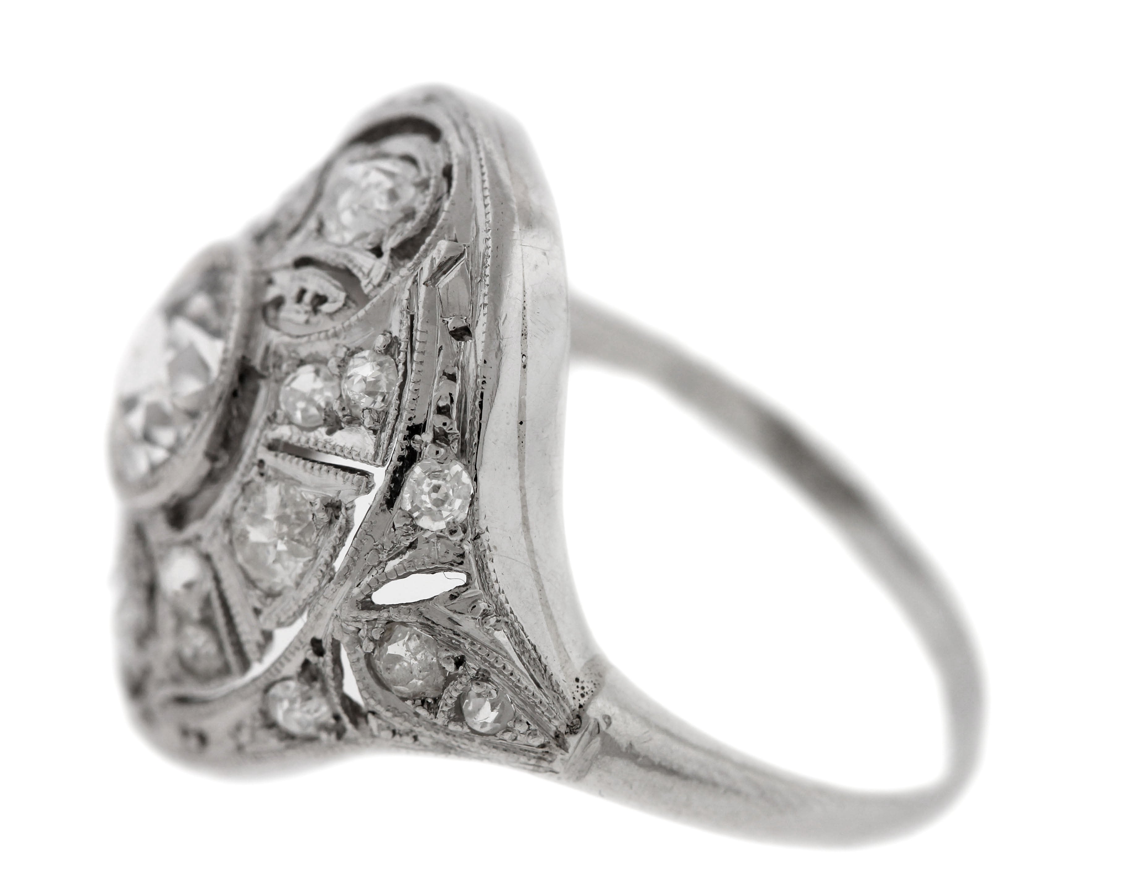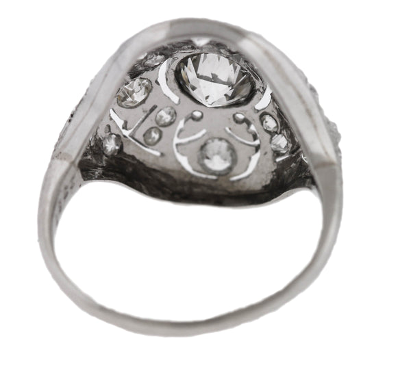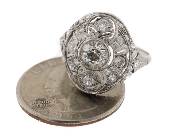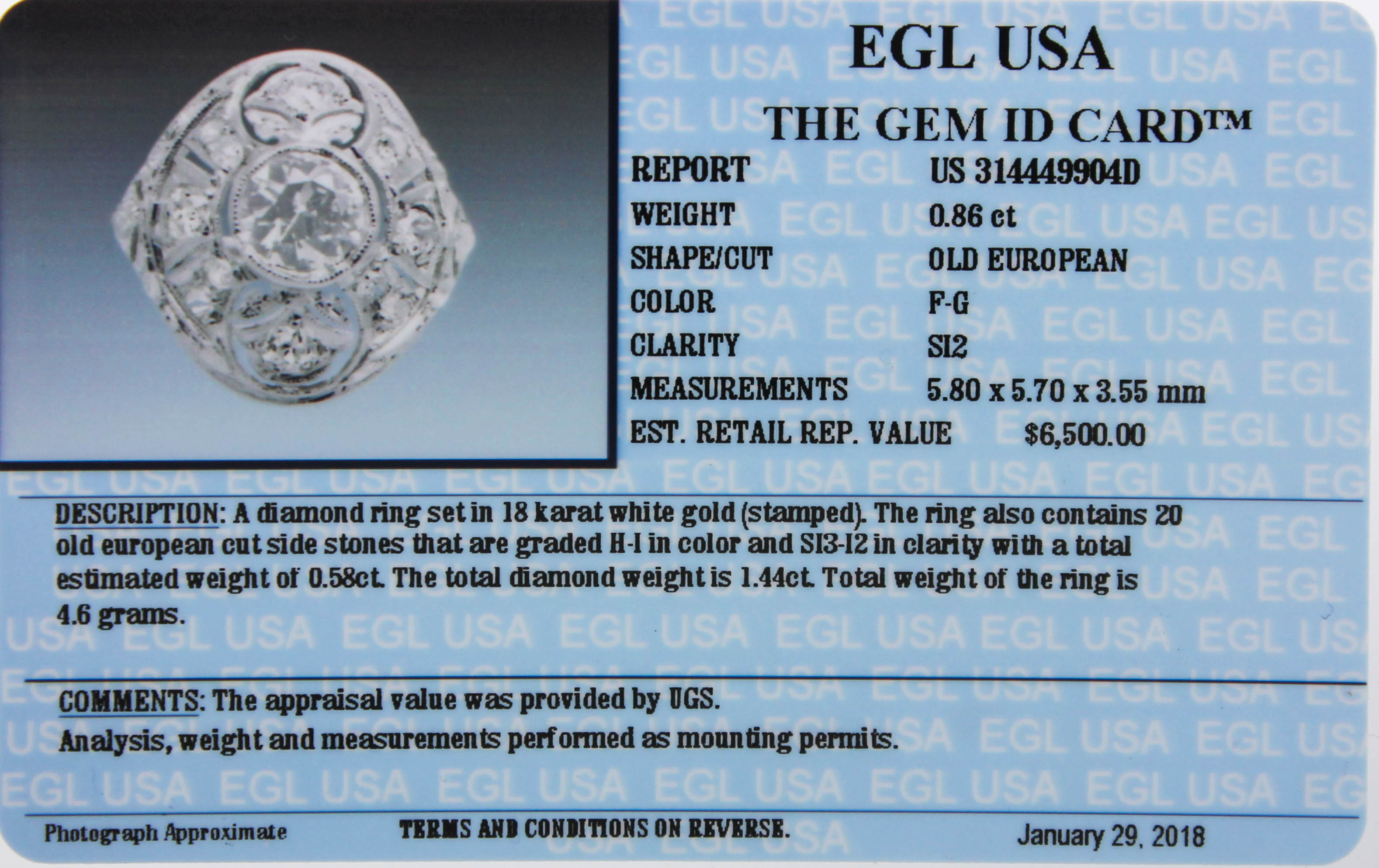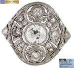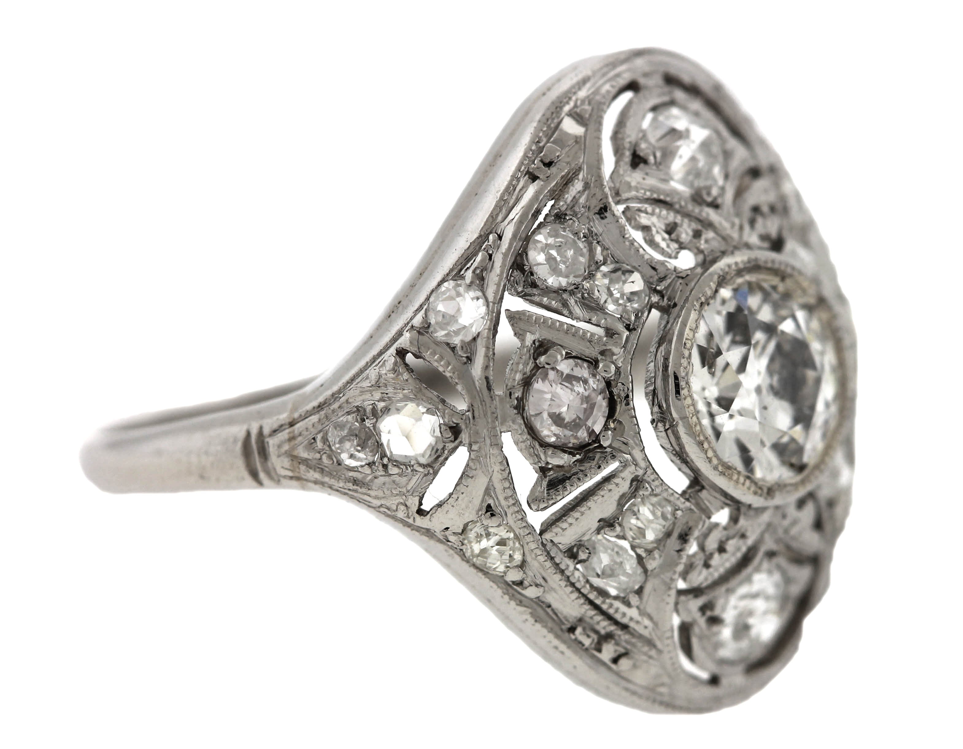 Antique Art Deco 18K White Gold 1.44ctw Old European Diamond Filigree Ring EGL