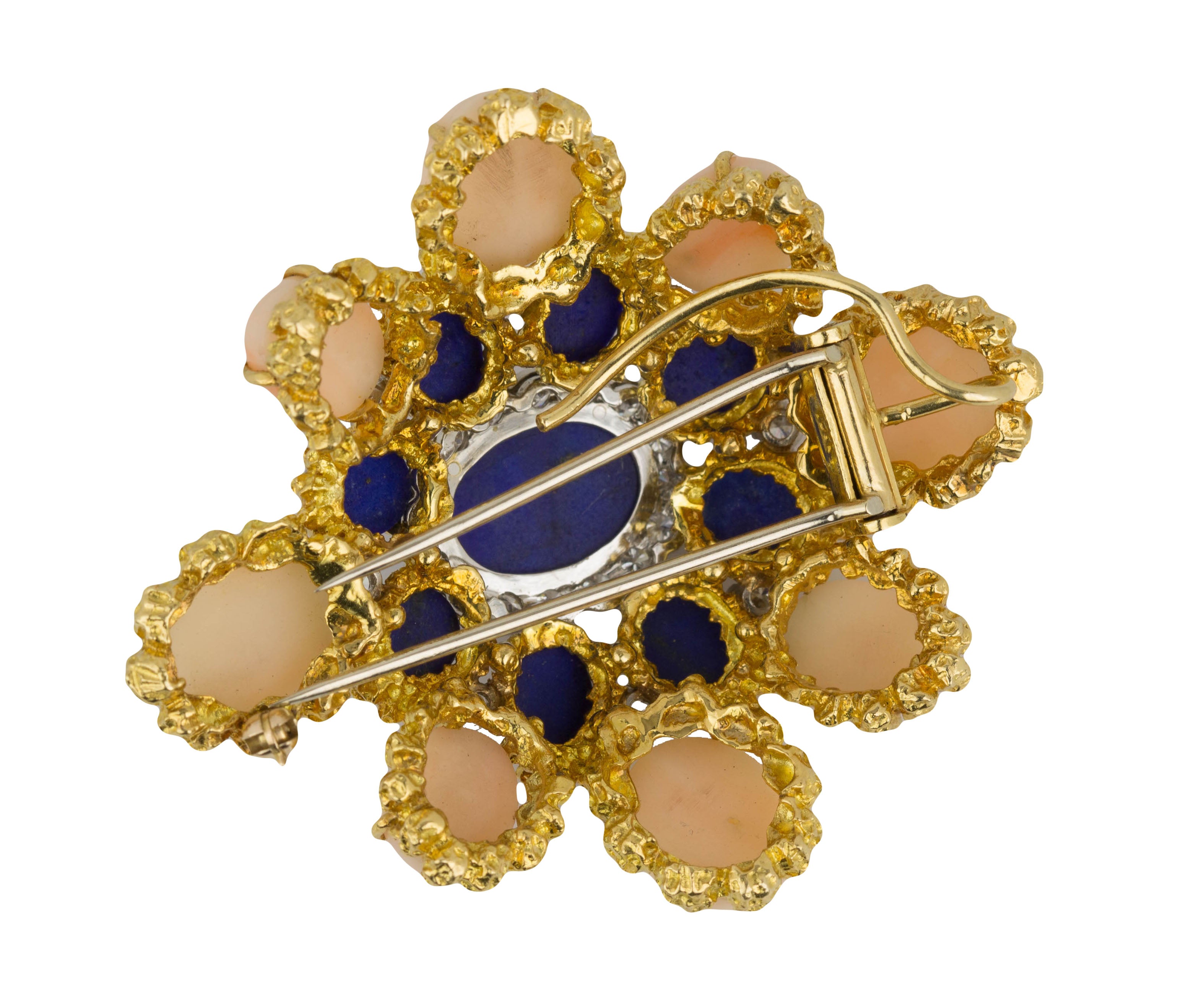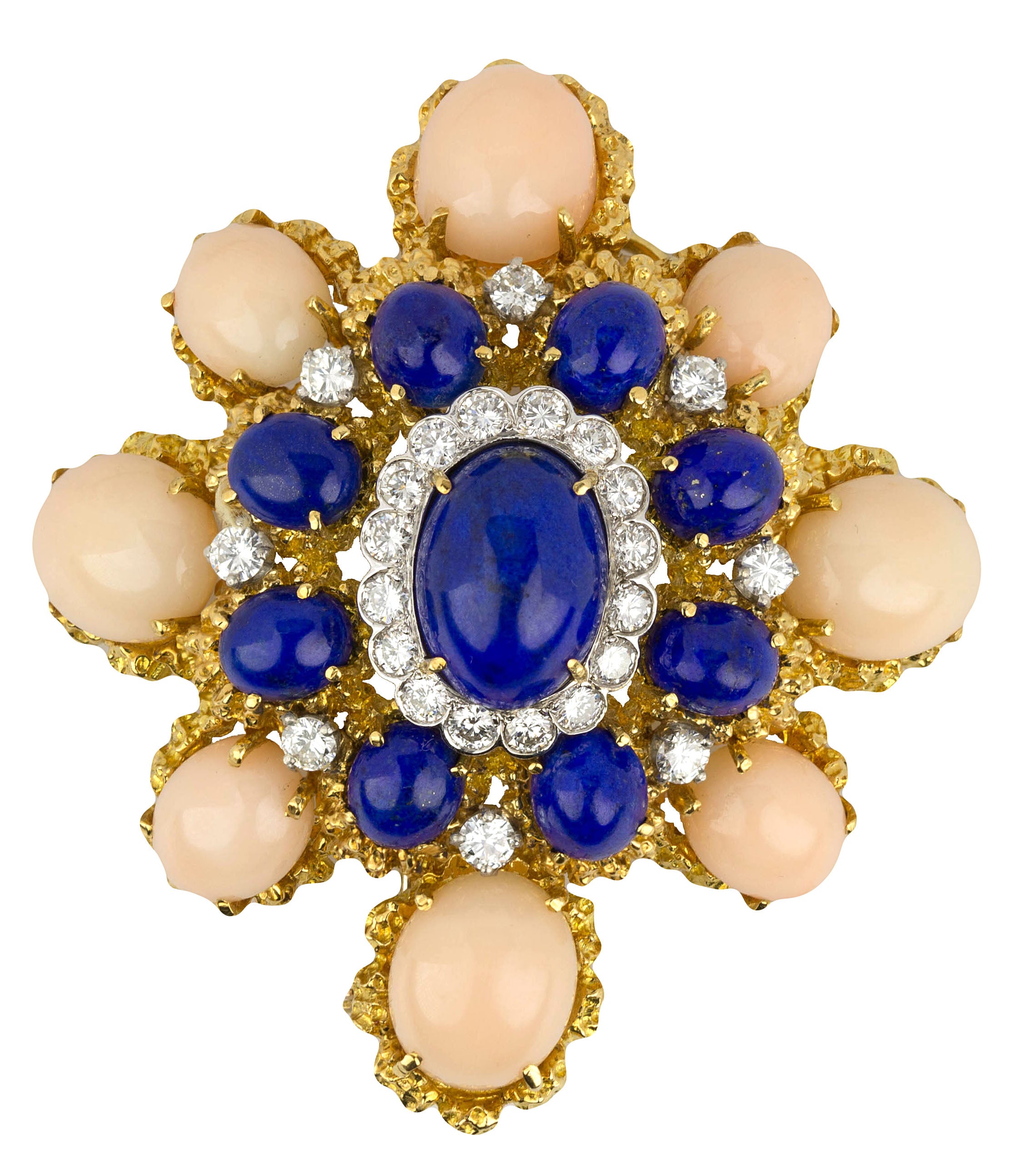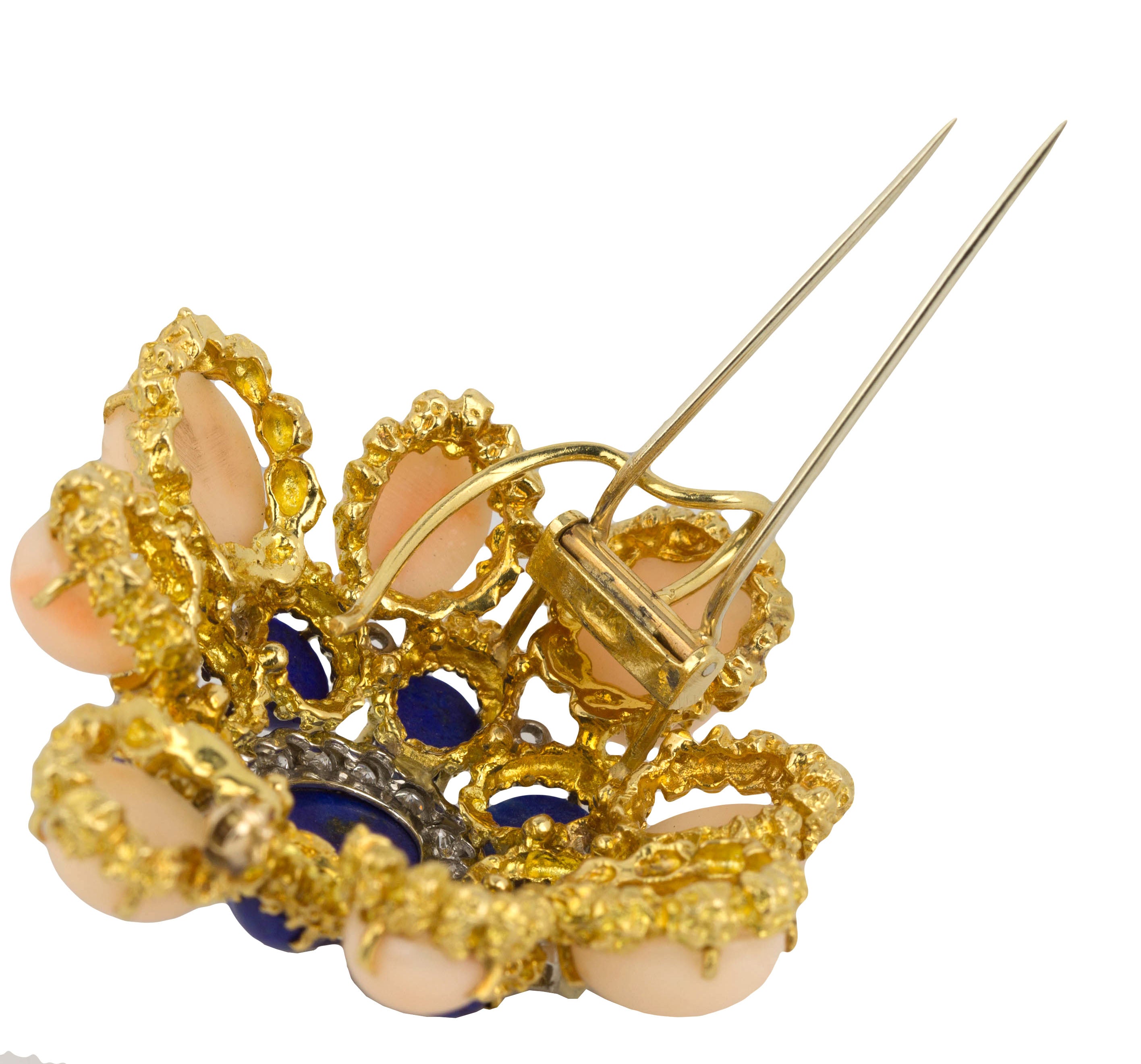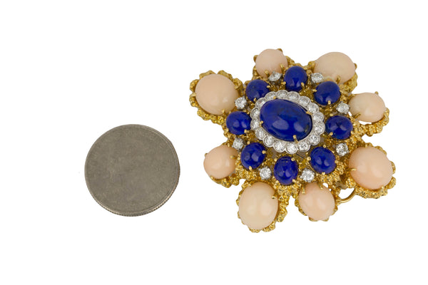 Antique Estate 18K Yellow Gold 2.08ctw Diamond Lapis Coral Stick Pin Pendant
