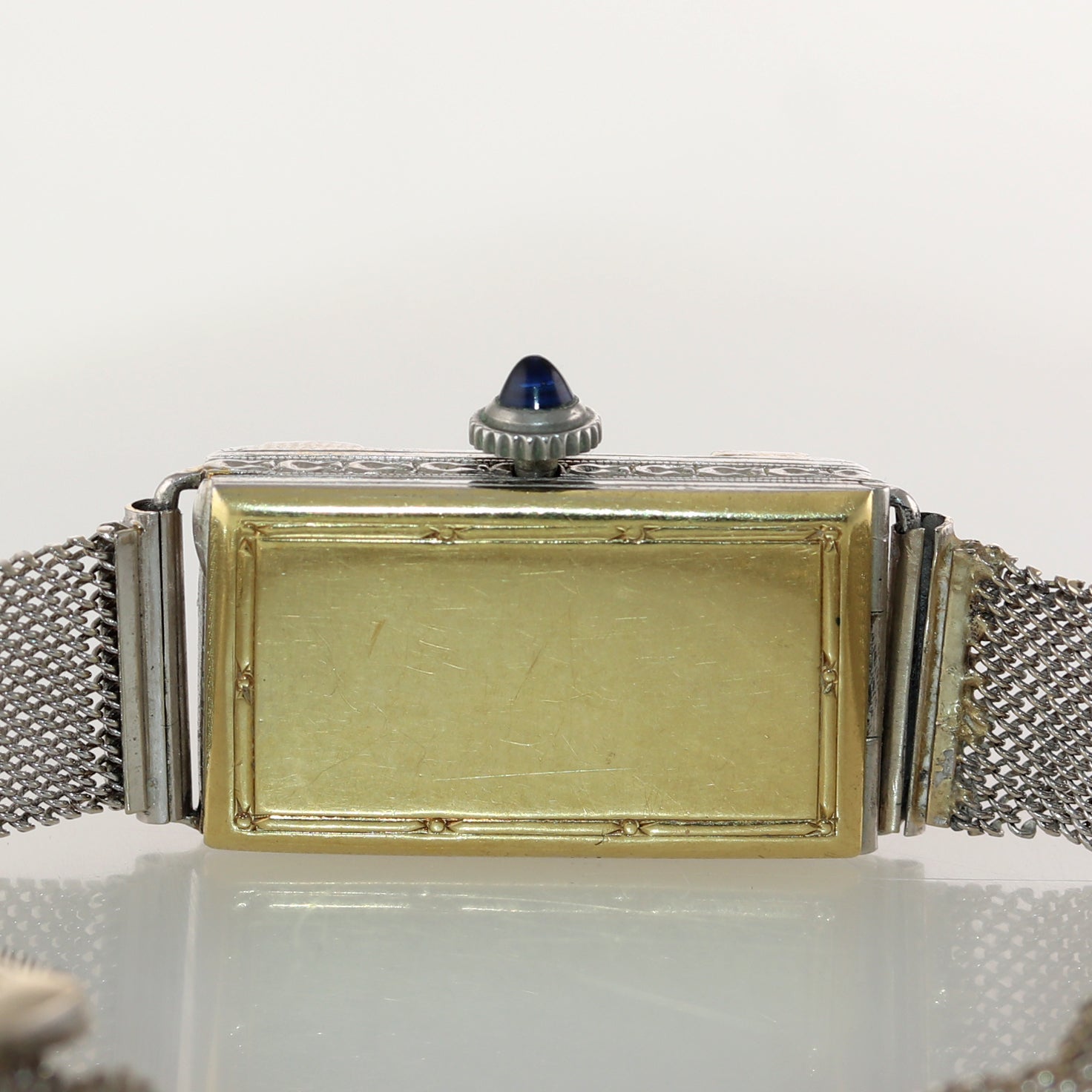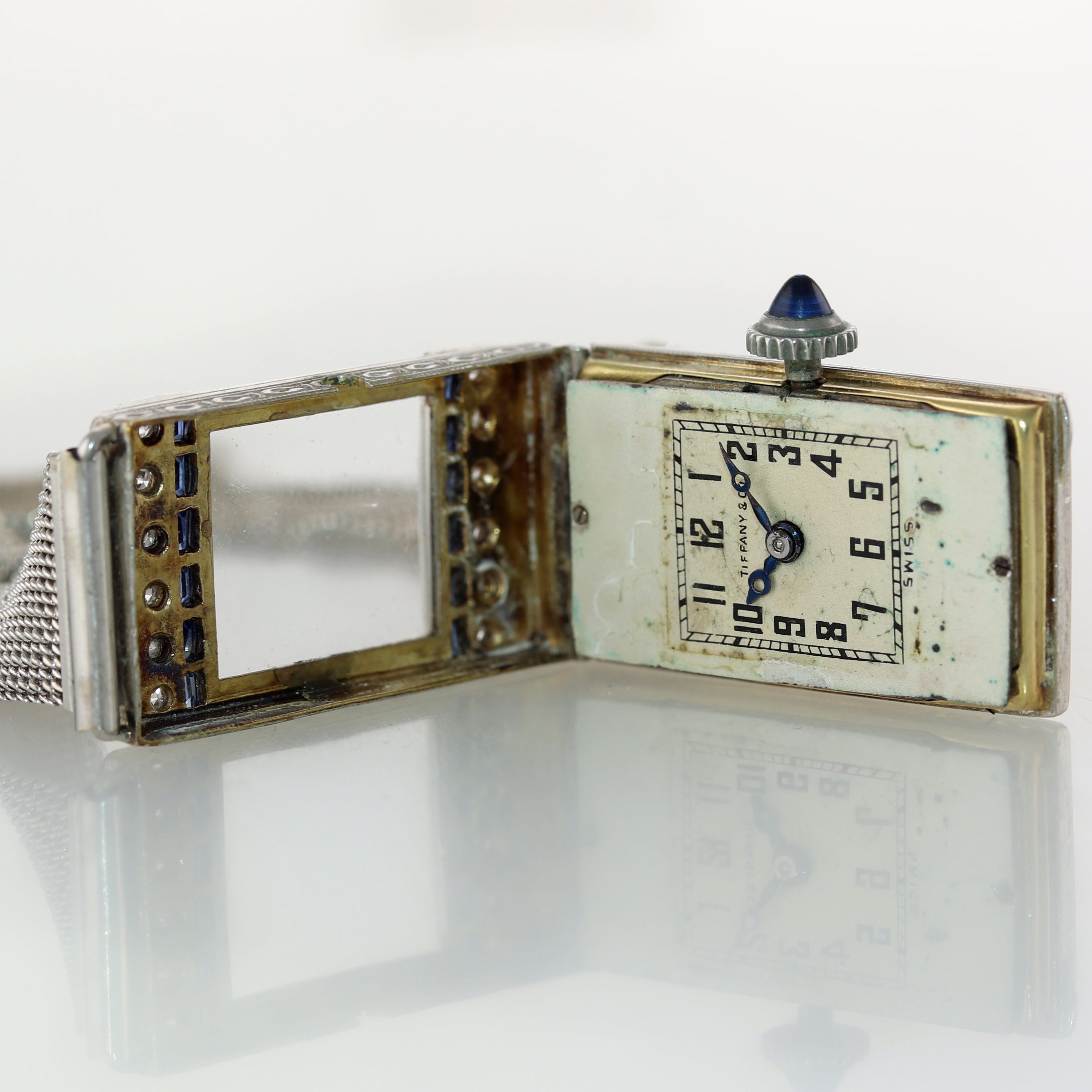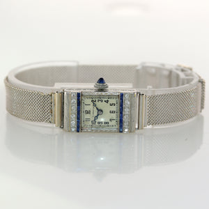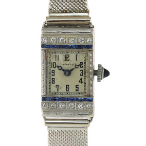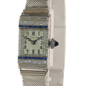 Antique Tiffany & Co. AWC Platinum 18k Yellow Gold Mesh Diamond Sapphire Watch