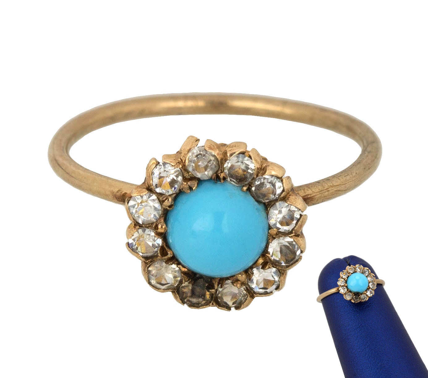 This item is in good condition; there is a hole in the turquoise which is pictured. It has recently been professionally cleaned and polished. Please review the images provided.