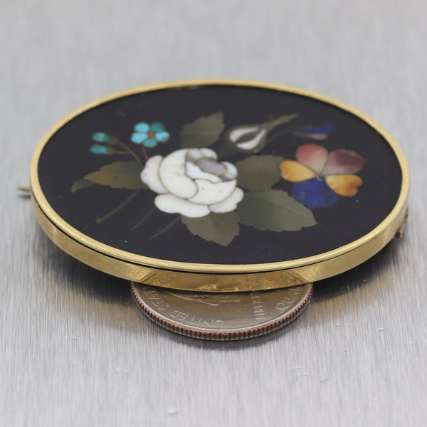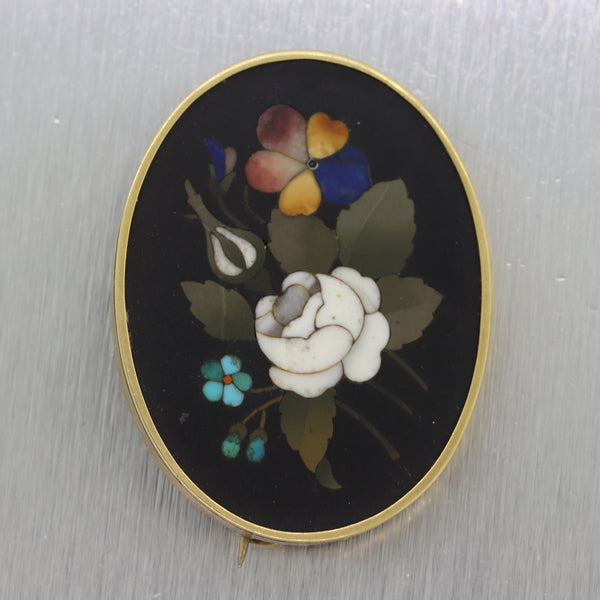 For your consideration, an authentic Antique Vintage Estate 14k Yellow Gold Pietra Dura Brooch Pin. This item will come in a lovely jewelry box for a perfect presentation and our unconditional 30 day money back return policy. E0