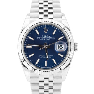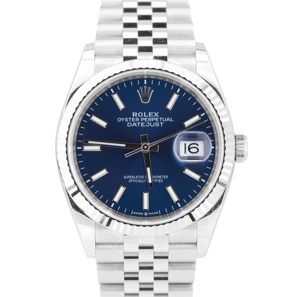 NEW 2021 Rolex DateJust 36 Blue 36mm Fluted Steel Gold Jubilee Watch 126234