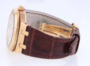 | Band | Audemars Brown Leather Strap with an 18K Rose Gold Deployment Clasp |