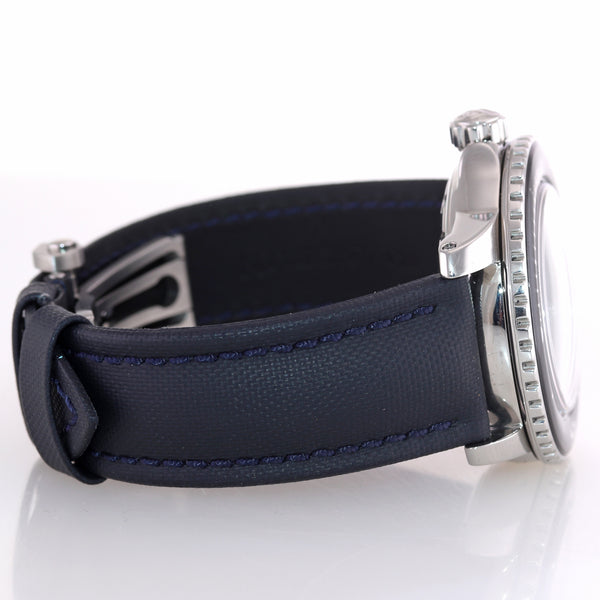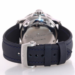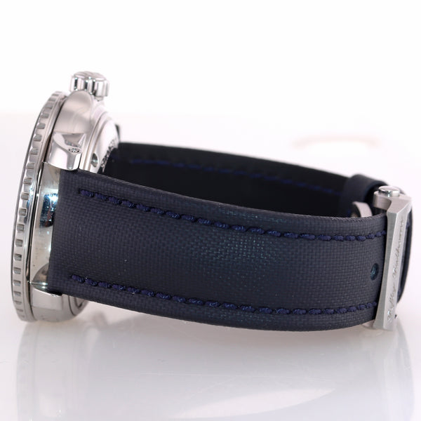 Black Canvas Strap with a double deployment buckle. Black leather strap with tang buckle also included |