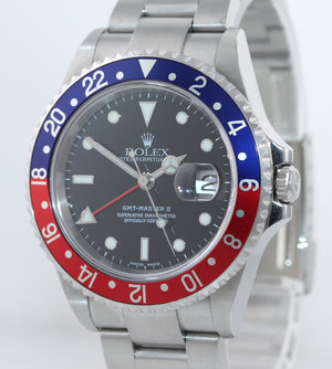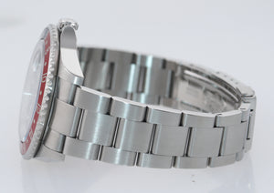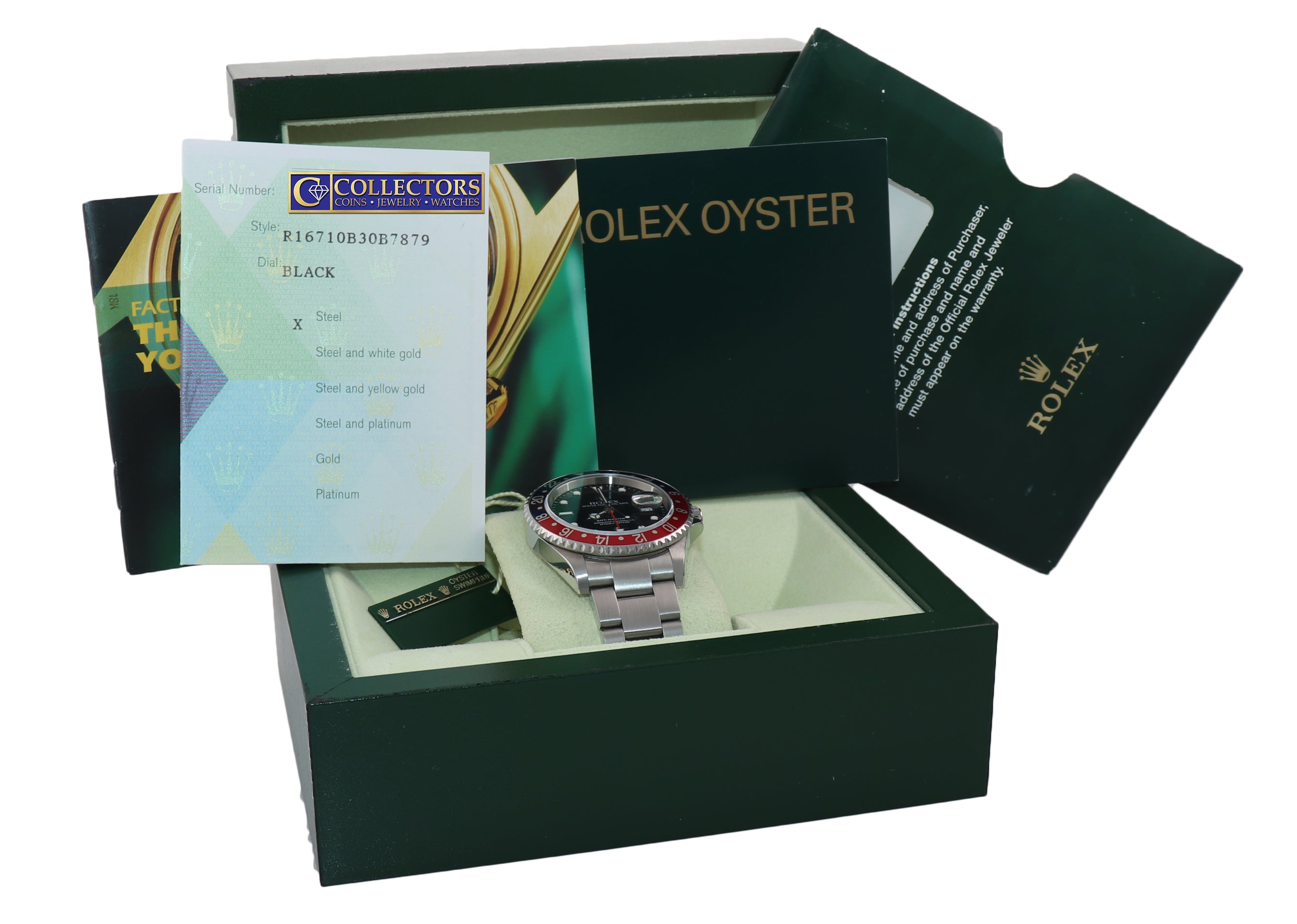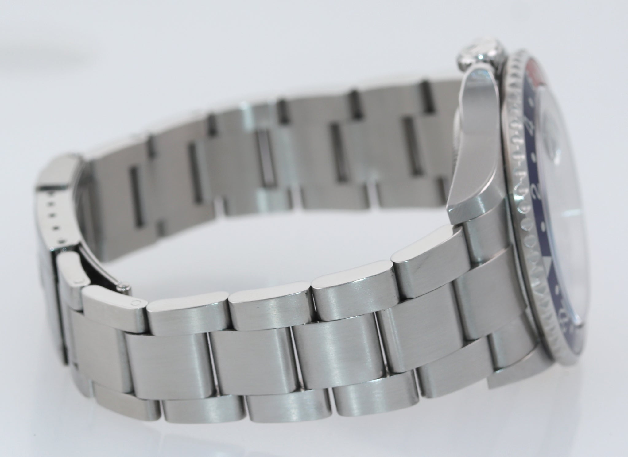 PAPERS BLRO Rolex GMT-Master II Pepsi Red Blue Stainless 16710 40mm Date Watch with Original Papers Box.