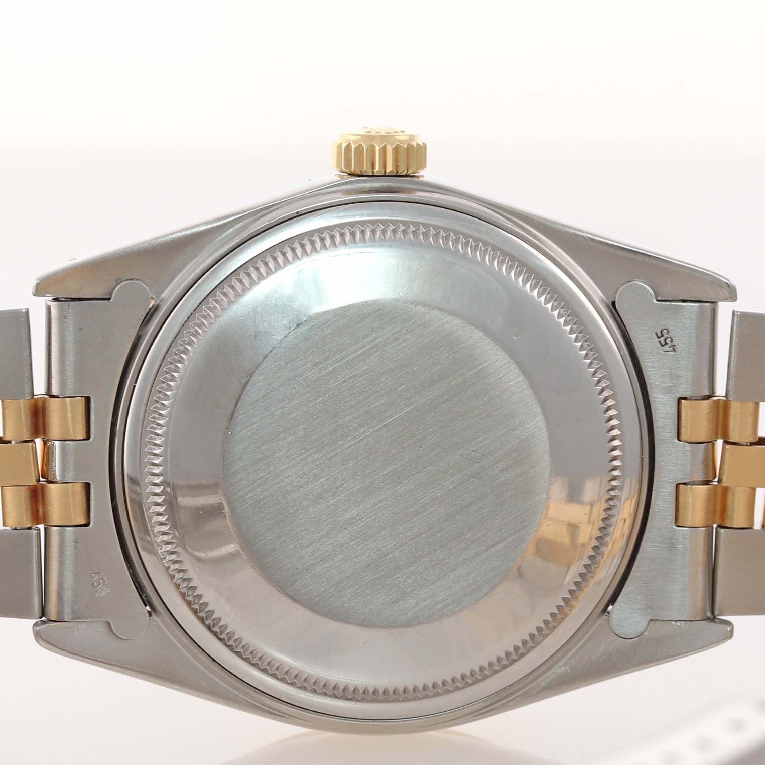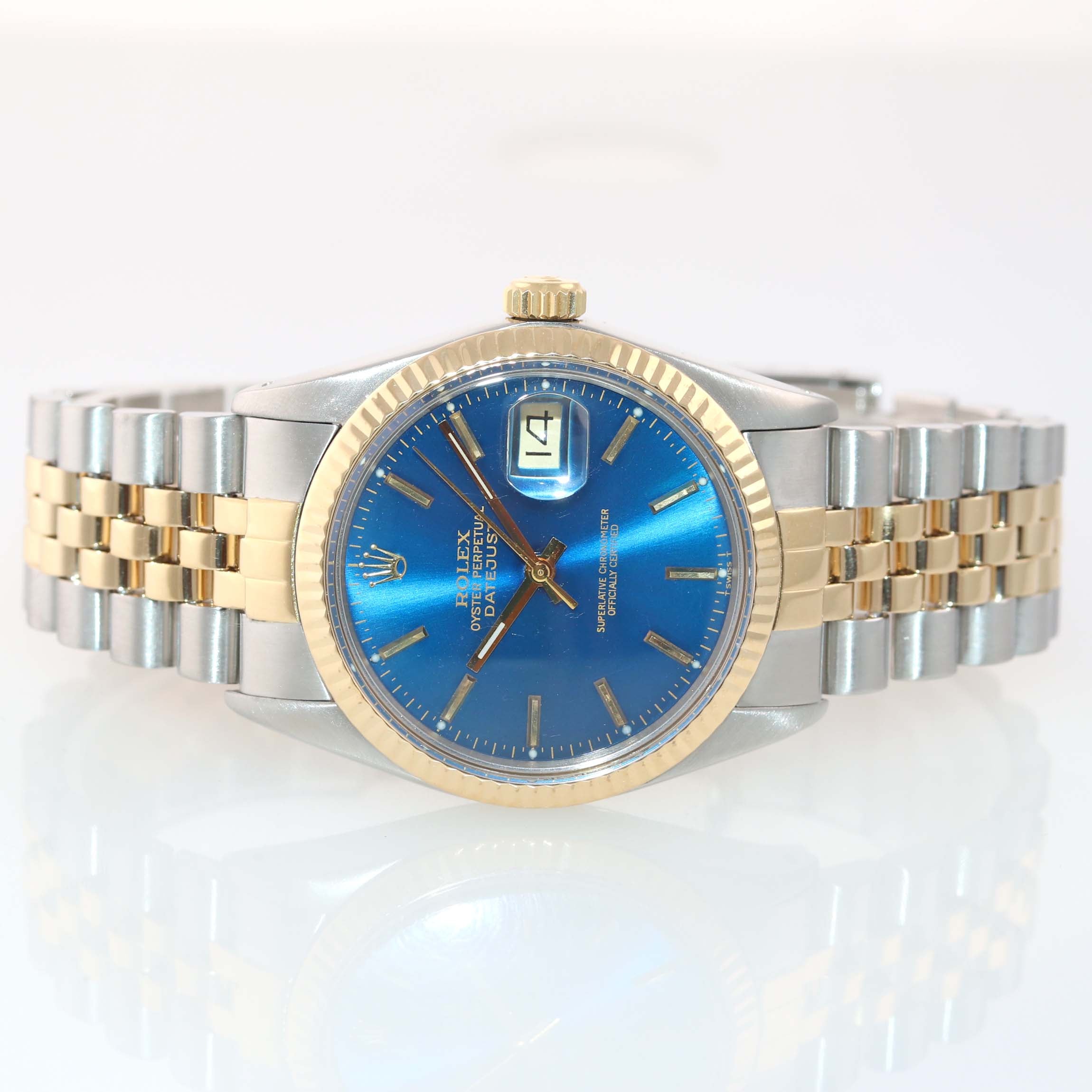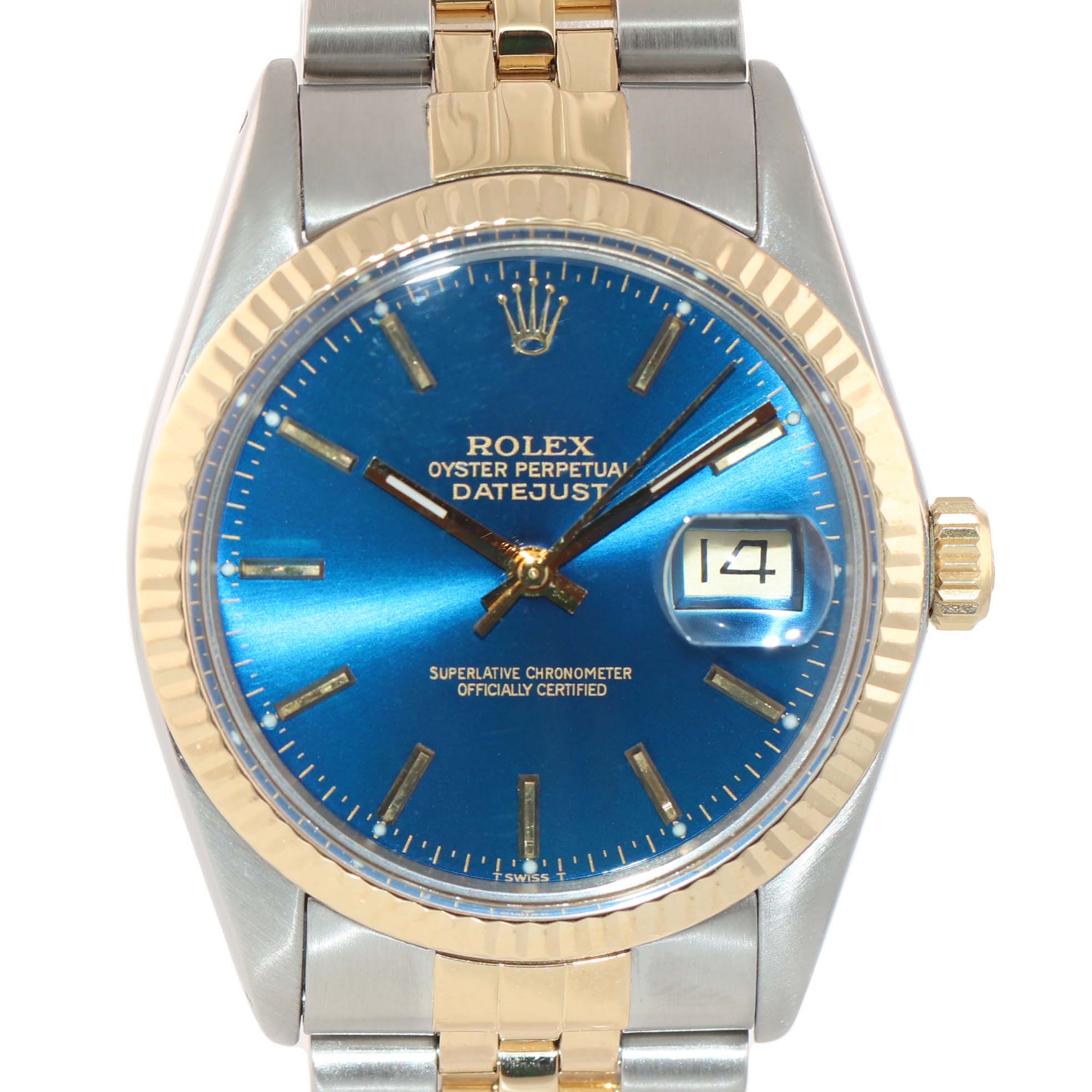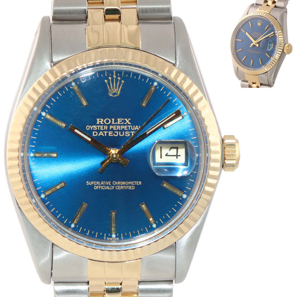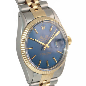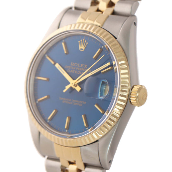 Blue Stick Rolex DateJust 16013 Two-Tone 18k Yellow Gold Steel Jubilee Band Watch.