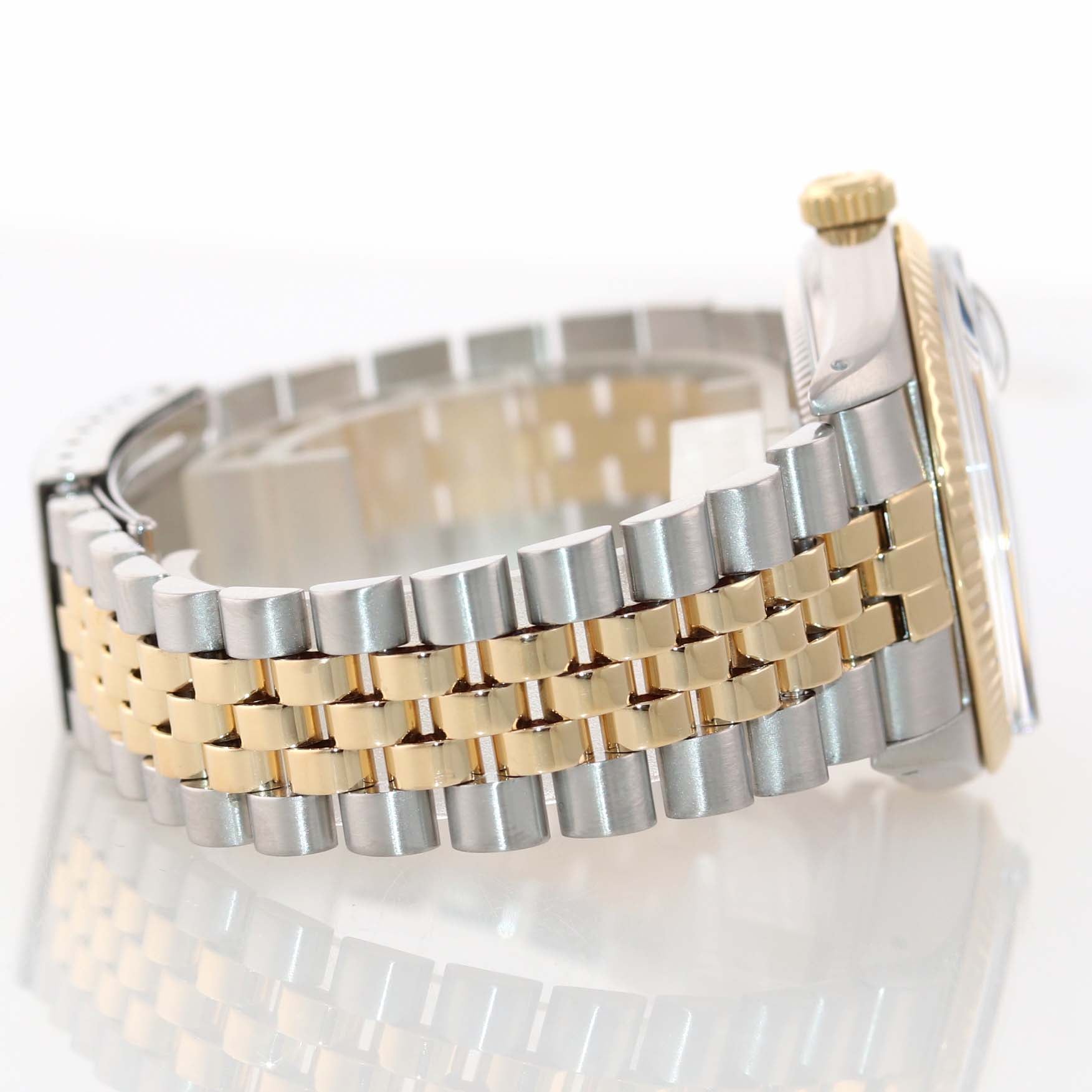 | Band | Original Rolex Two-Tone Jubilee Bracelet with a folding deployment clasp; band has light flex from use. |