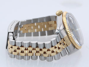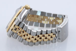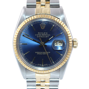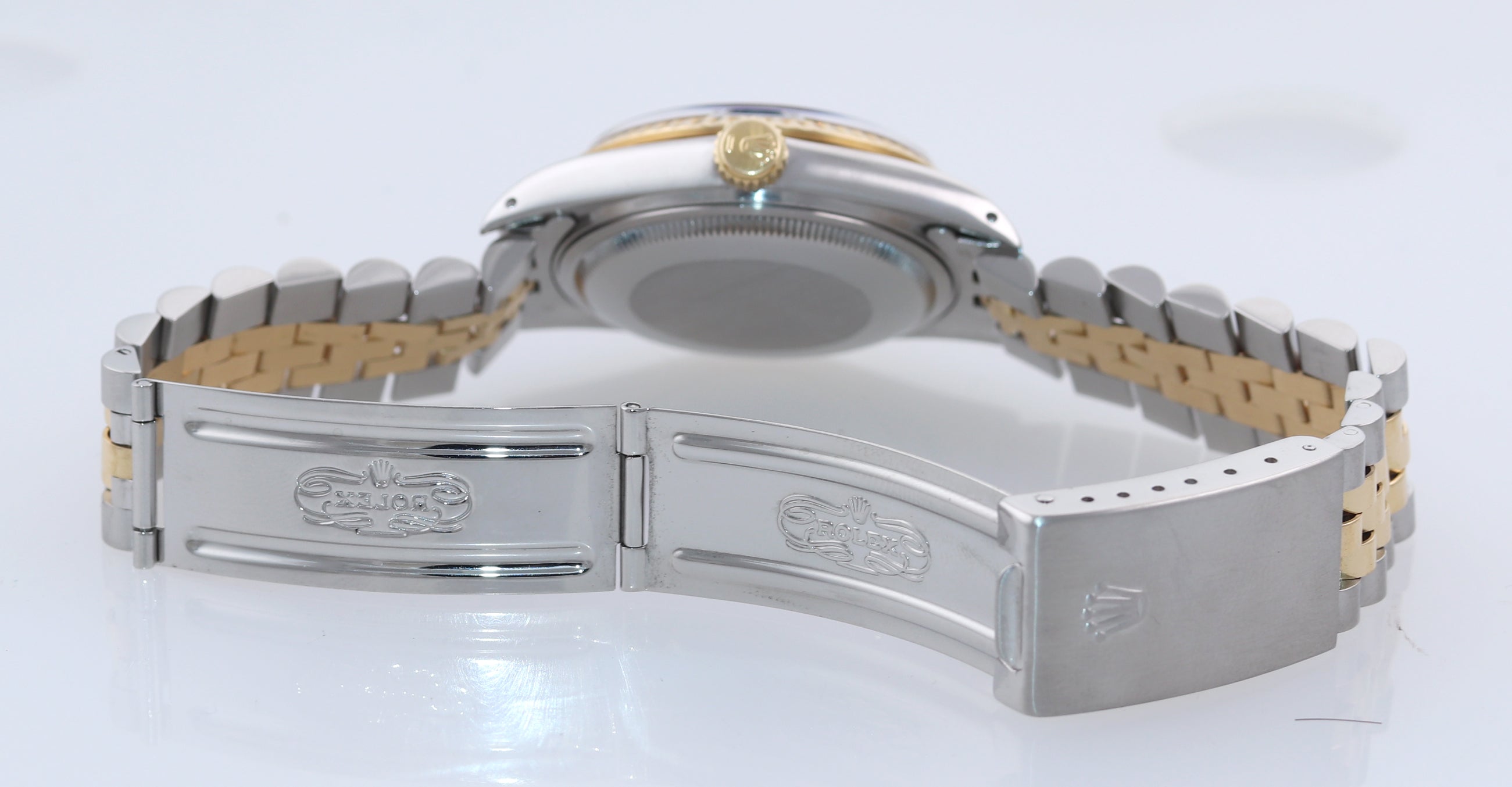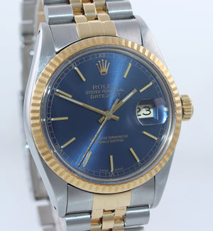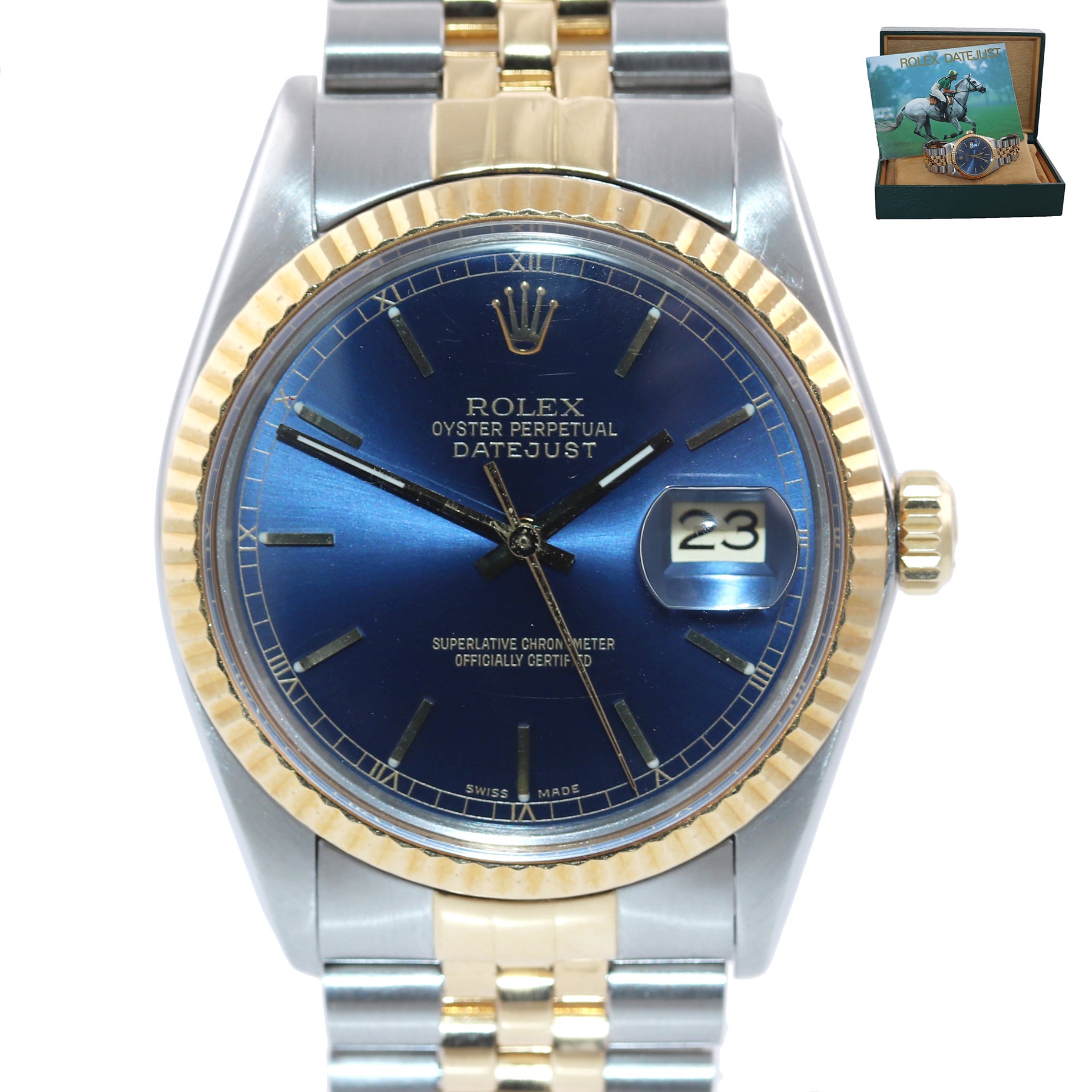 Rolex DateJust 16013 Two-Tone 18k Yellow Gold Steel Jubilee Band Blue Stick Watch Box