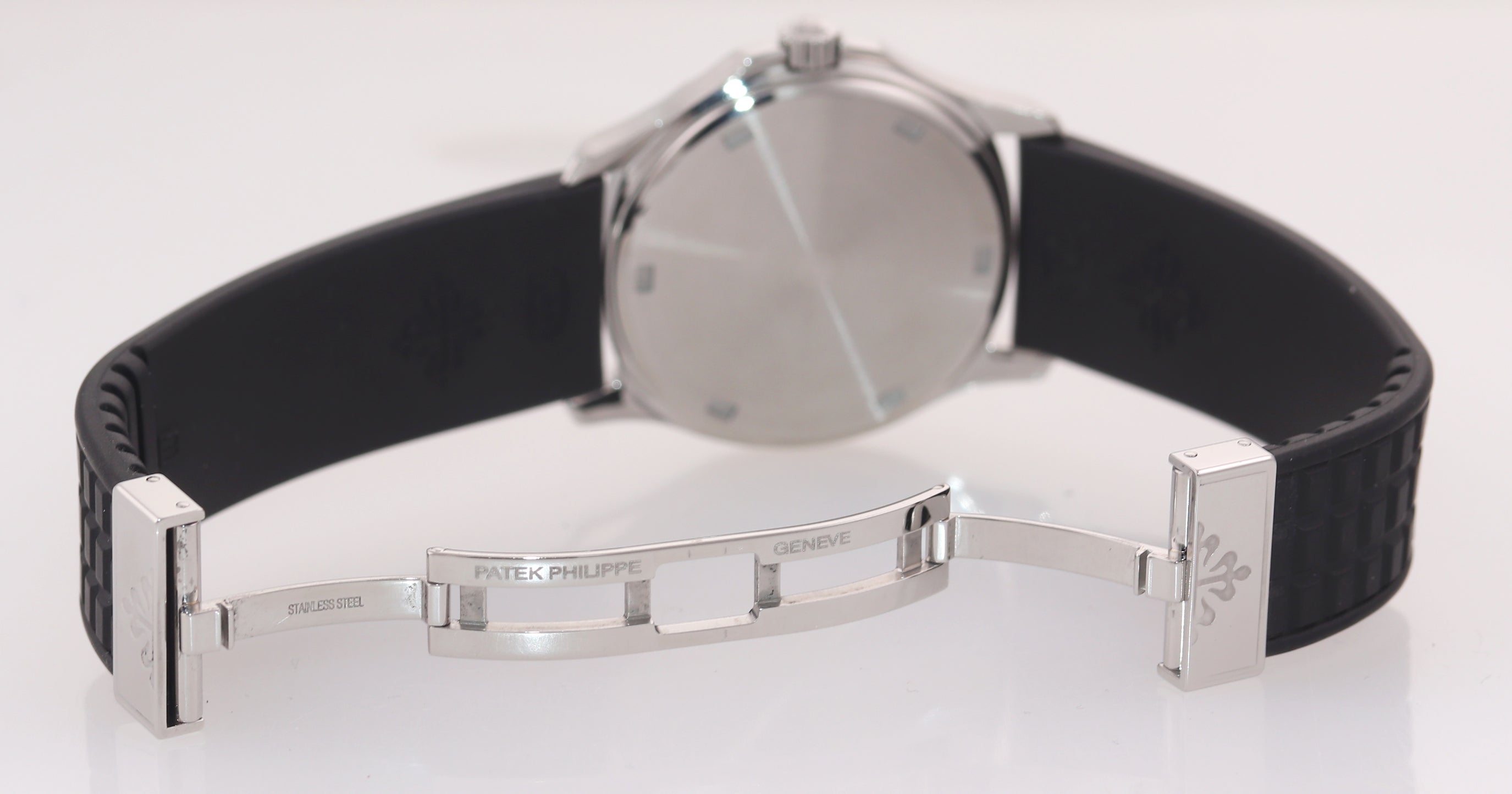 | Band | Original Patek Philippe Black Rubber Strap with a Stainless Steel Tang Buckle |