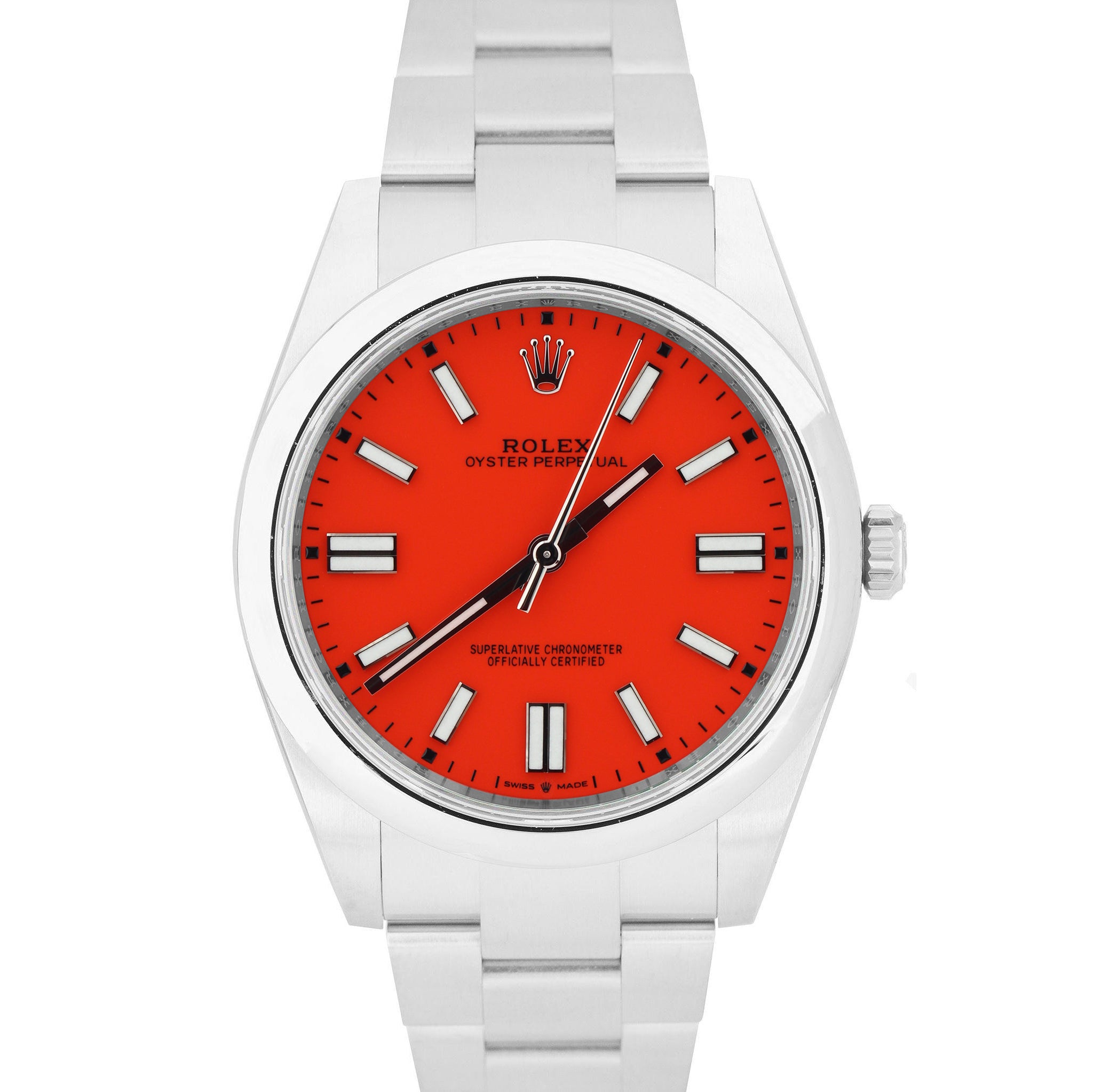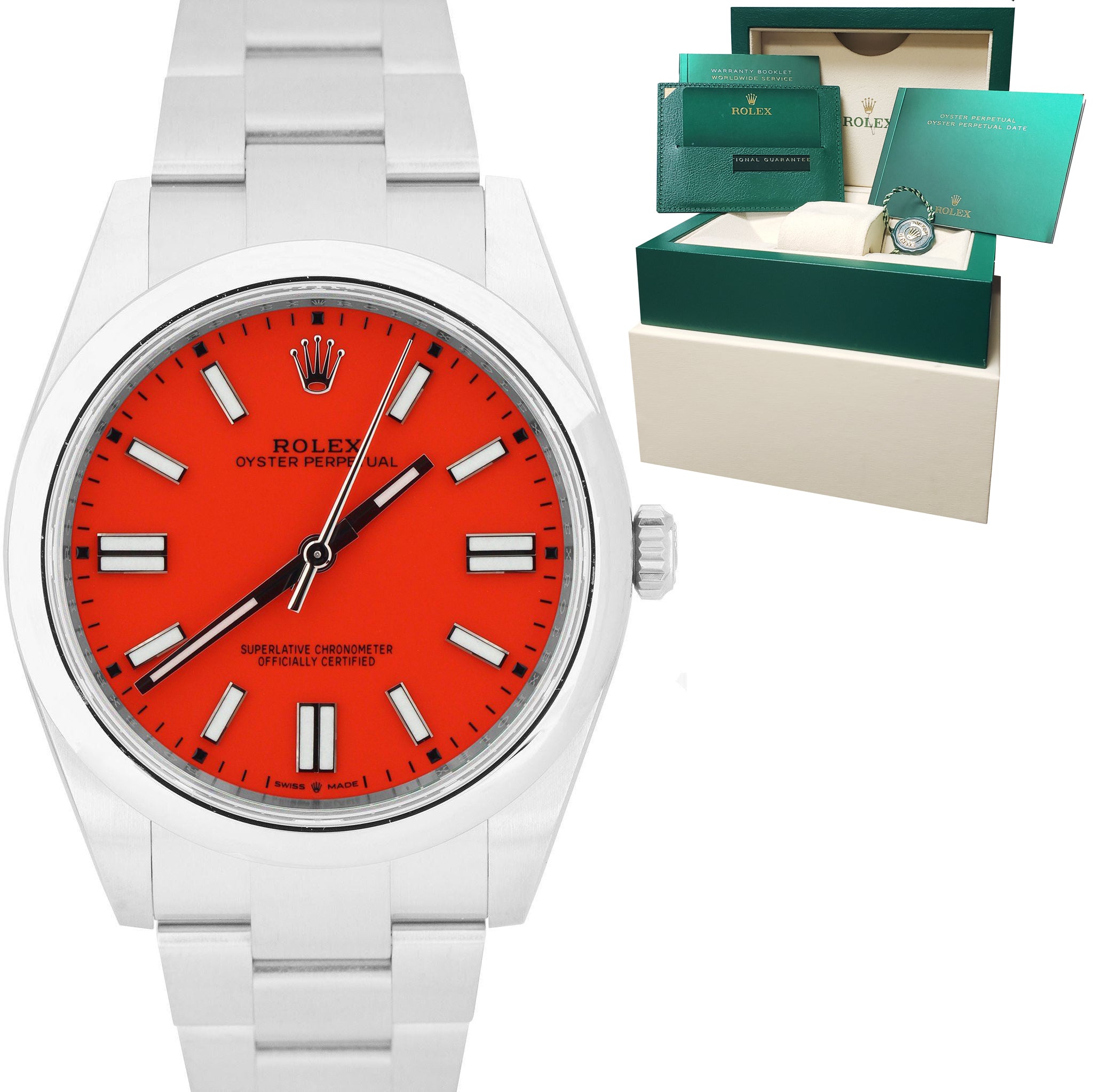 BRAND NEW 2021 Rolex Oyster Perpetual 41mm CORAL RED Oyster Steel Watch 124300