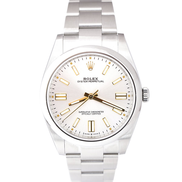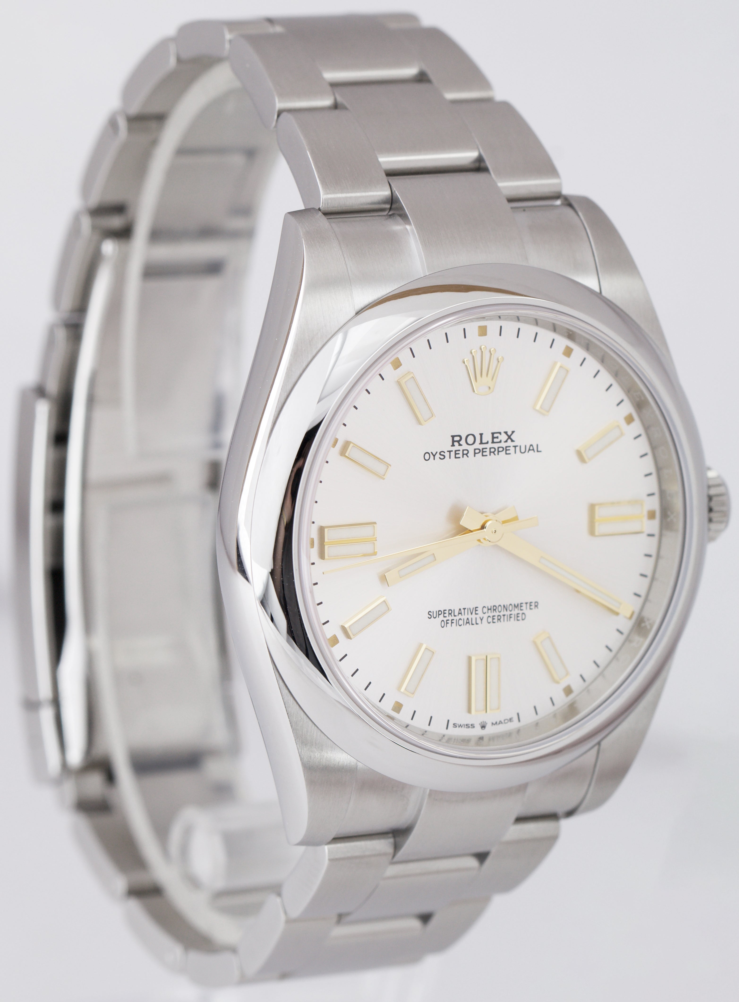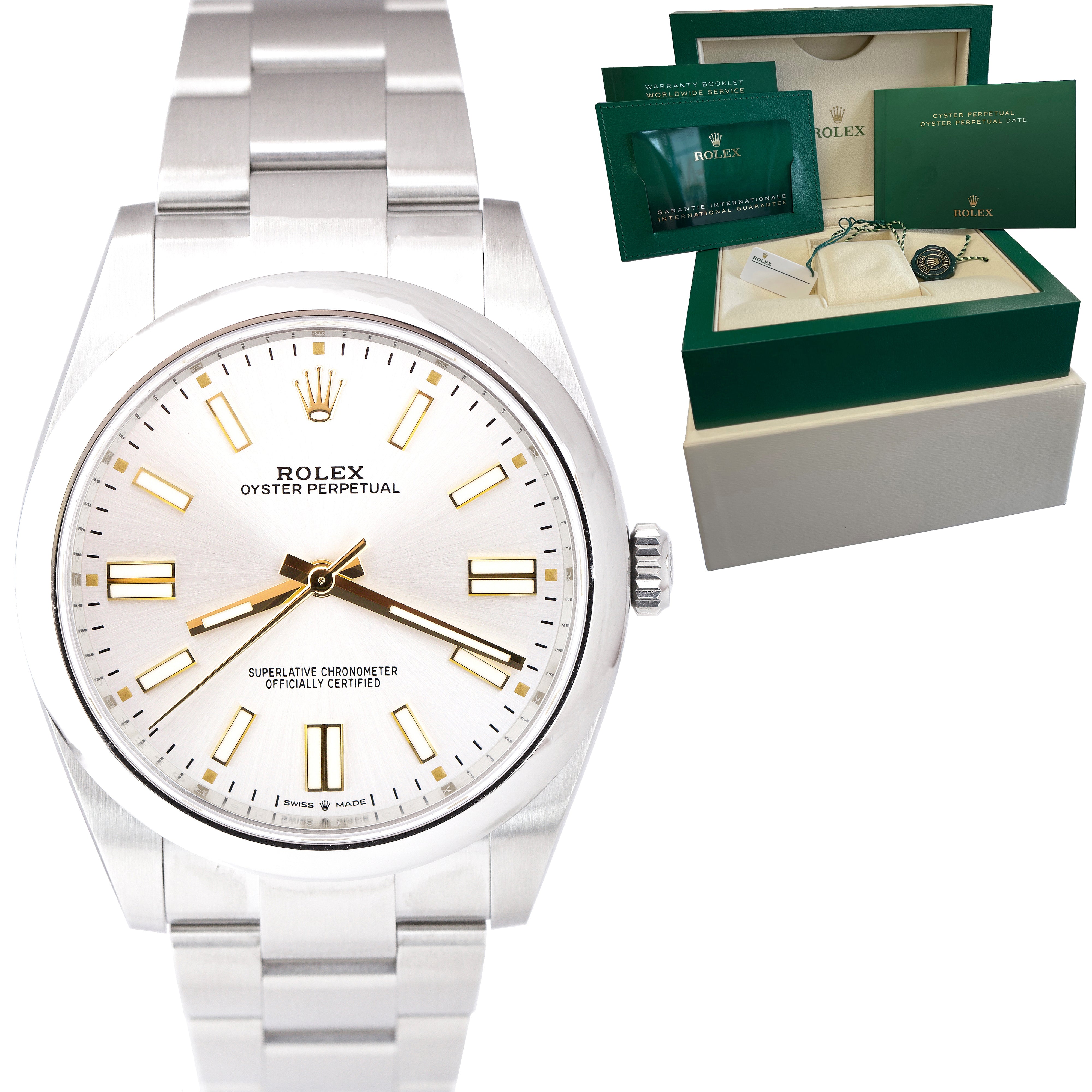 BRAND NEW MAY 2021 Rolex Oyster Perpetual 41mm SILVER GOLD Oyster Watch 124300