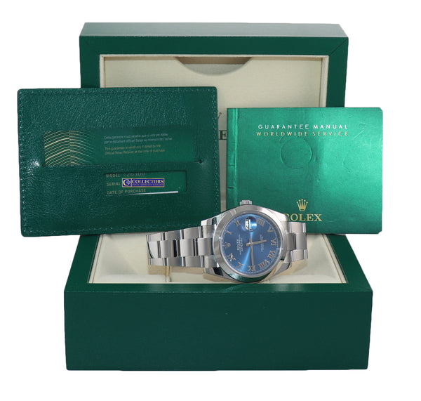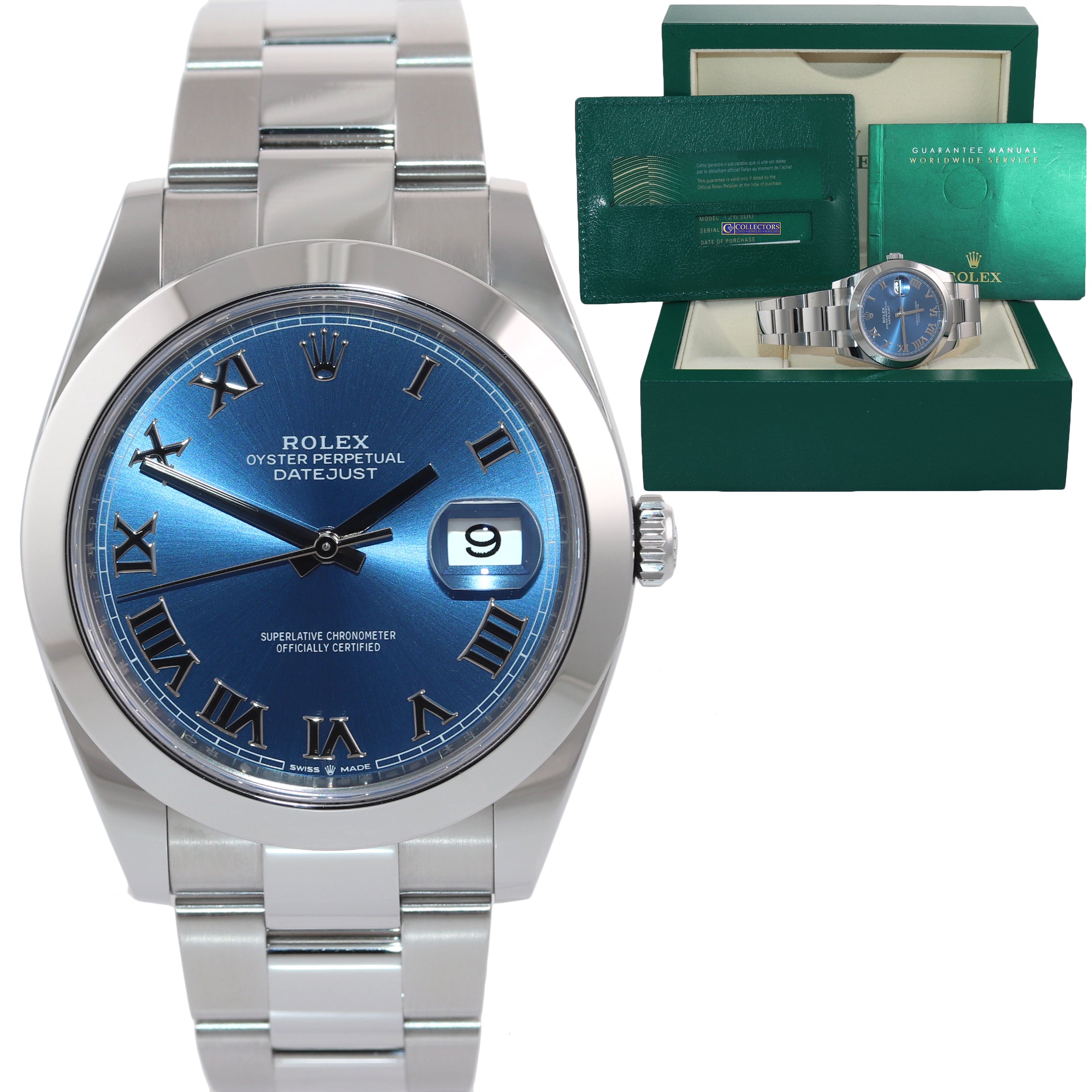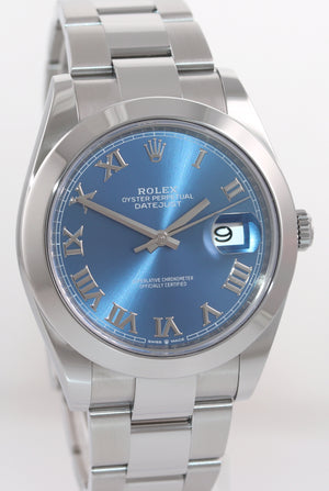 NEW PAPERS Rolex DateJust 41 Steel 126300 Blue Roman Oyster Band Watch Box