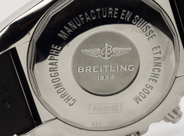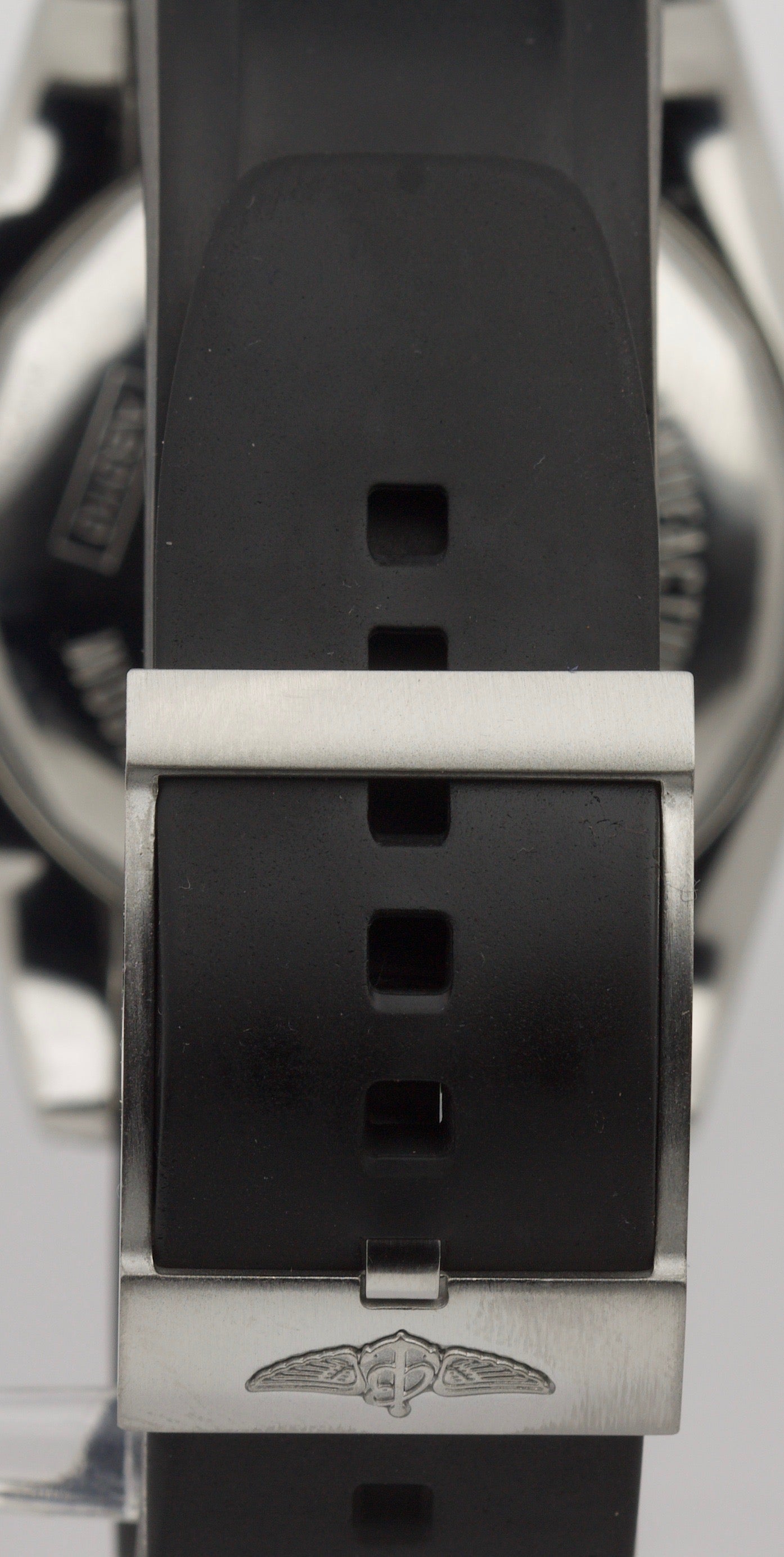 | Band | Original Breitling Black Rubber Strap with a Stainless Steel Deployment Clasp |
